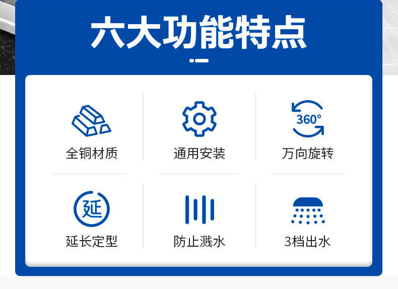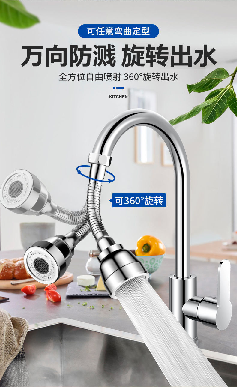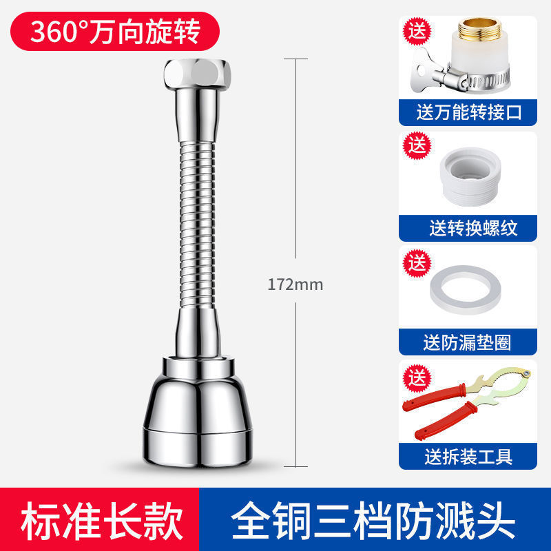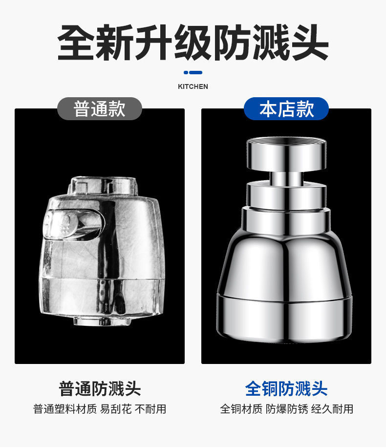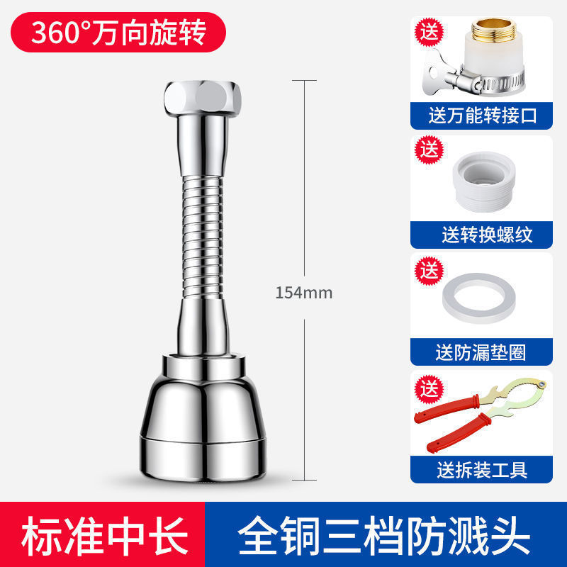 범용 회전 수도꼭지 필터 노즐 3 단 미세 구리 가압 스플래시 헤드 전기 도금 연장 버블러