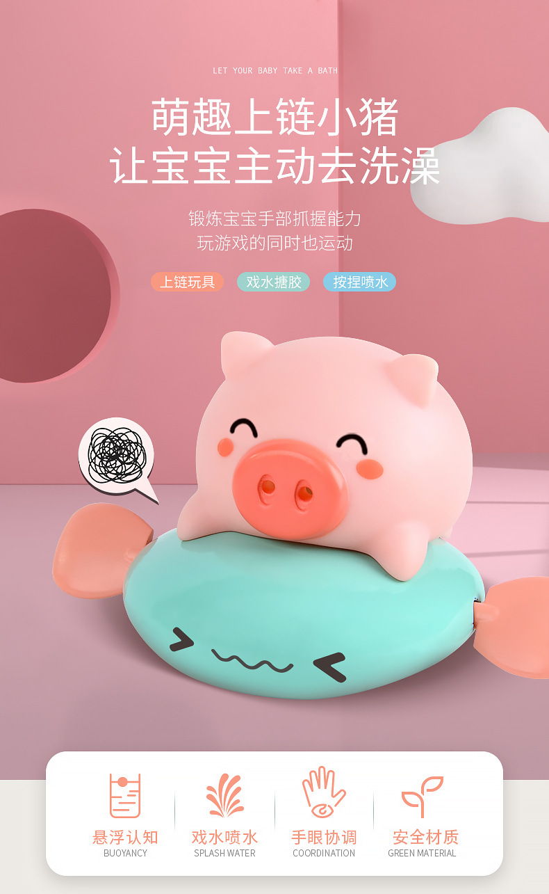 아기 목욕 장난감 어린이 물 놀이 새끼 돼지 아기 목욕 수영 장난감 소년과 소녀 쉐이크 톤 귀여운 돼지 비행 물고기스토어 가기