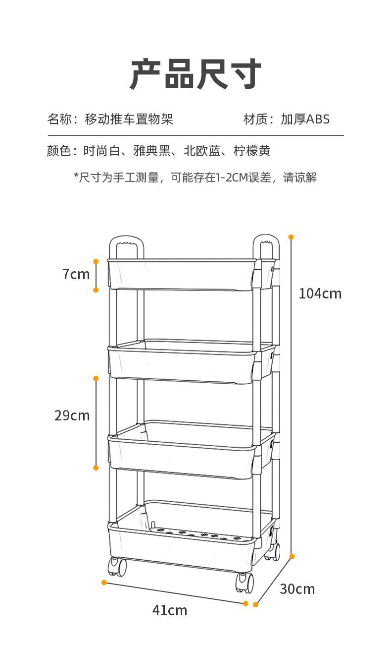 트롤리 스토리지 랙 바닥 다층 모바일 주방 야채 바구니 욕실 화장실 간식 보관 상자 책장 캐비닛