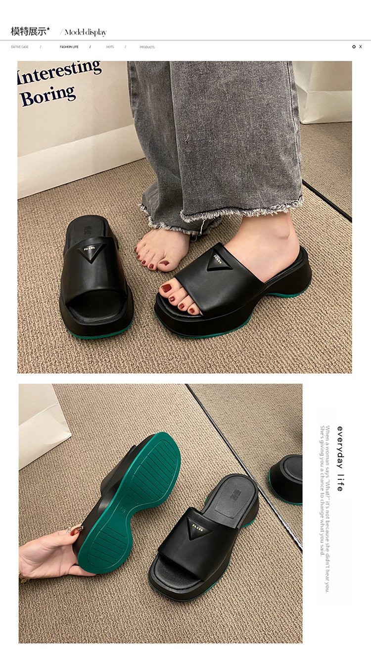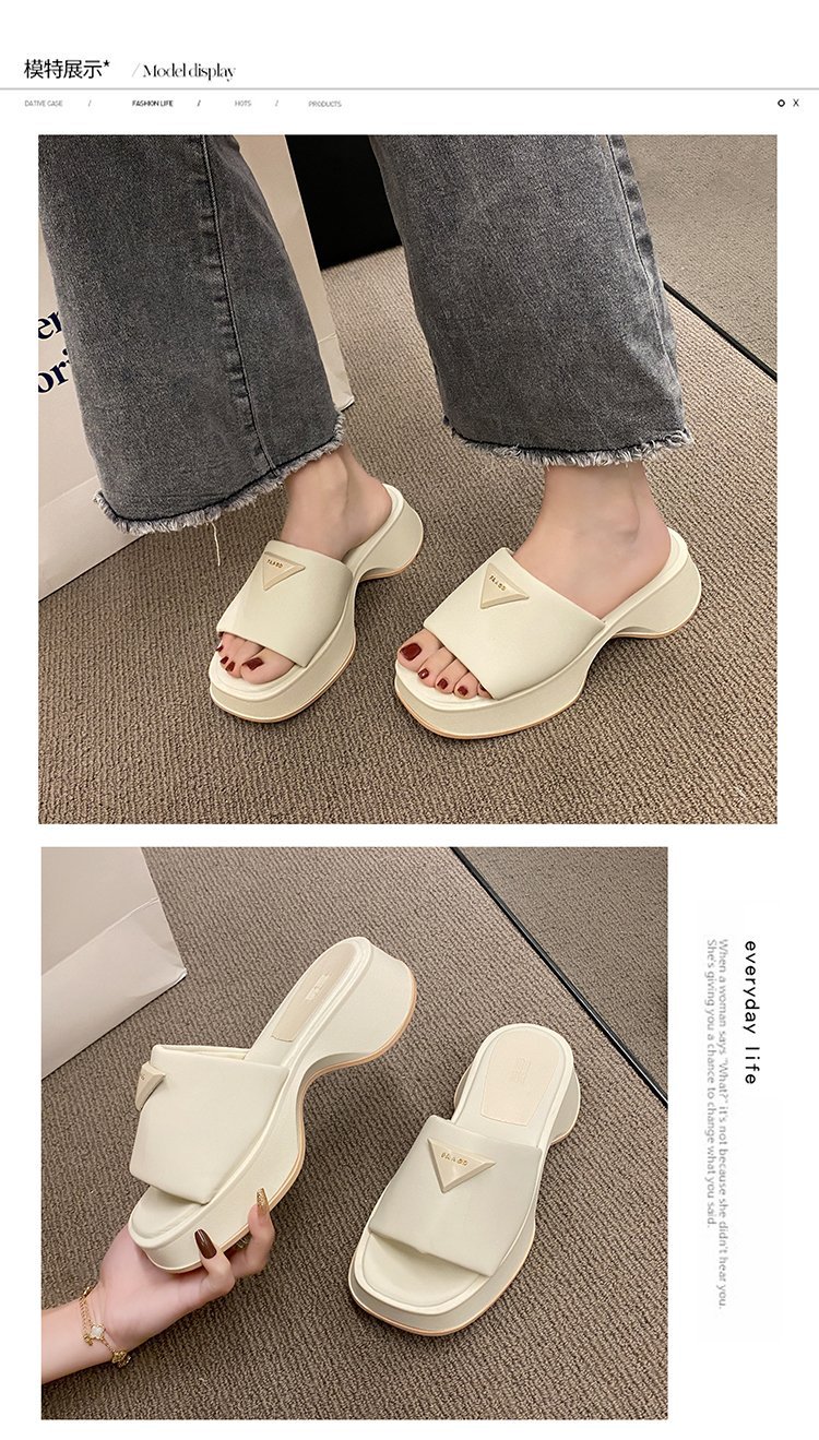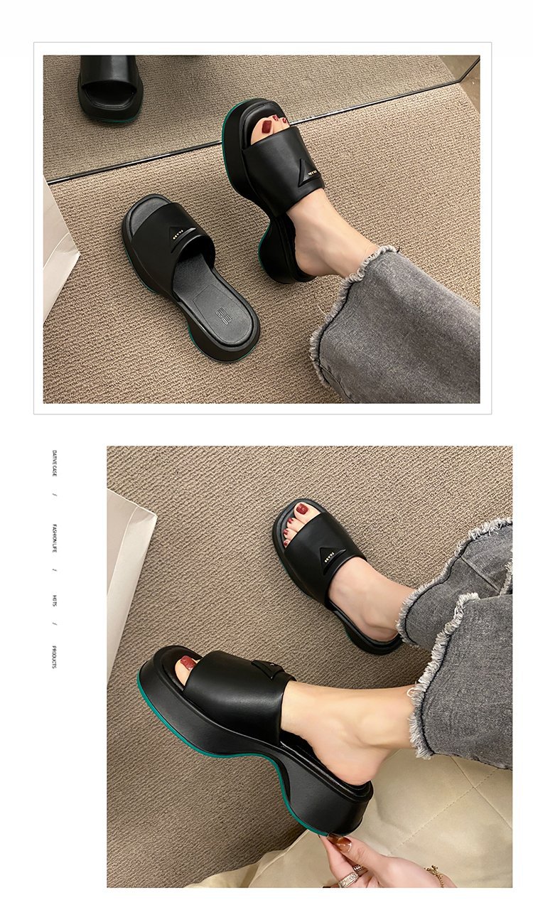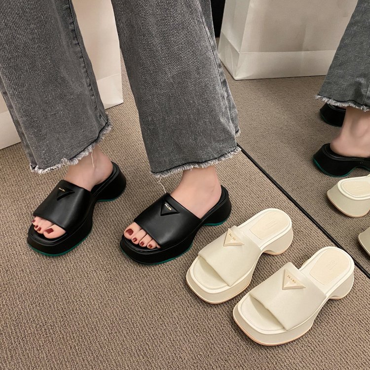 메탈 라벨 두꺼운 밑창 슬리퍼 여성용 2025 신상 인기 고급스러운 플랫폼 슬리퍼 유럽 및 미국 스타일 외출용 샌들스토어 가기