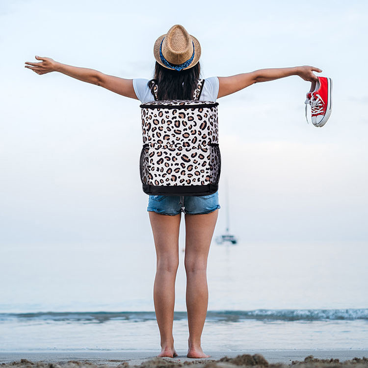미국식 야외 아이스백 물통 수납 가능 레오파드 무늬 이중 단열 피크닉 아이스백 휴대용 냉장 와인 아이스백 배낭스토어 가기