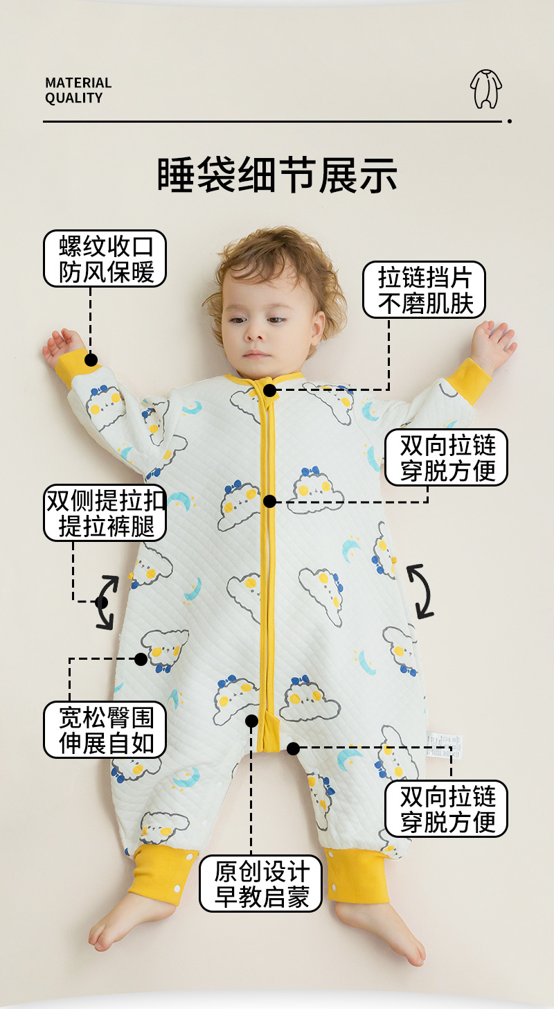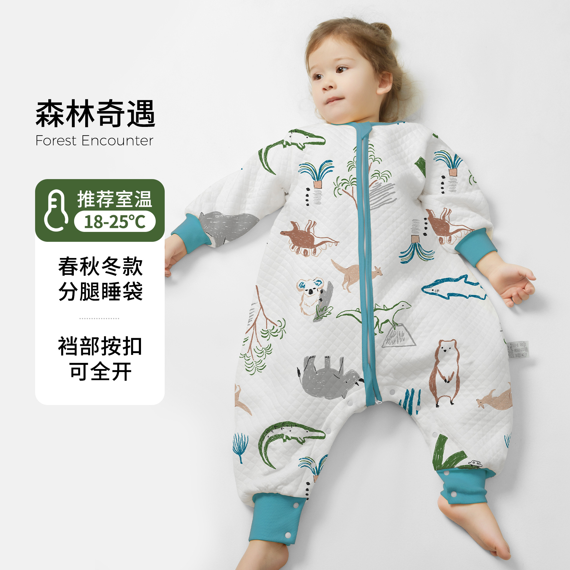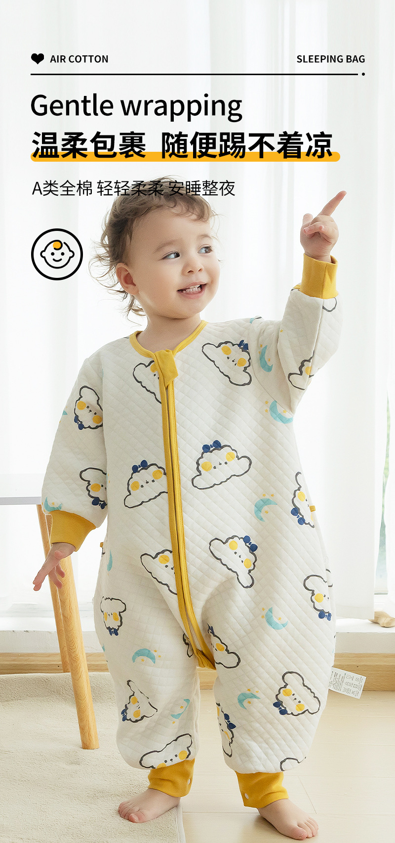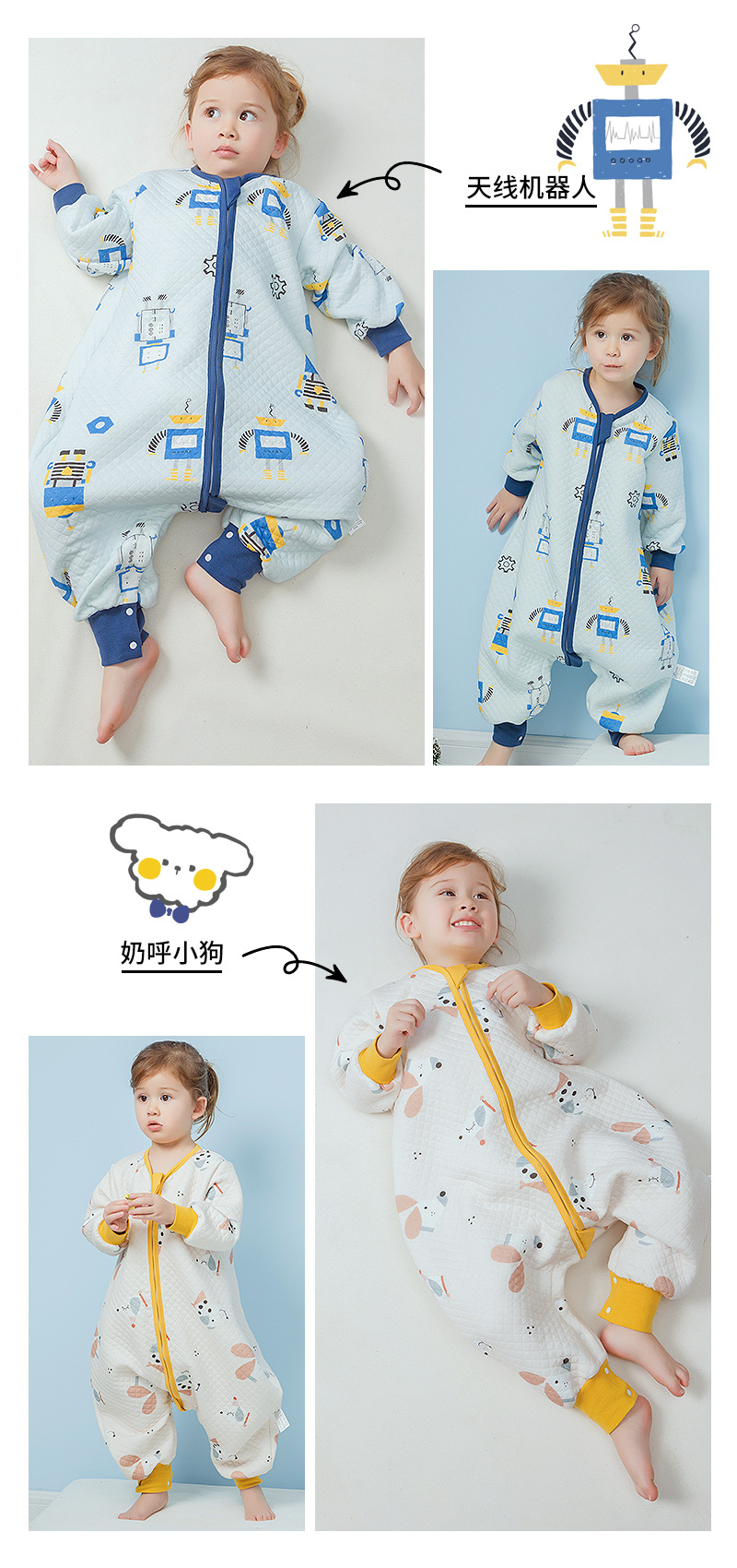 코튼 트리 아기 침낭 봄과 가을 어린이를위한 스플릿 다리가 있는 순면 아기 침낭 사계절 유니버설스토어 가기