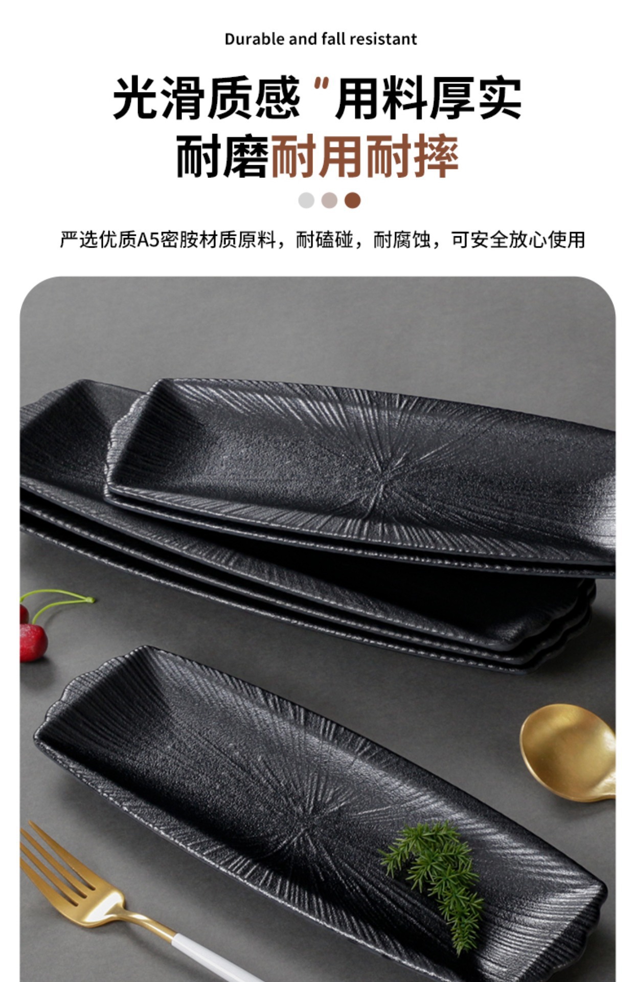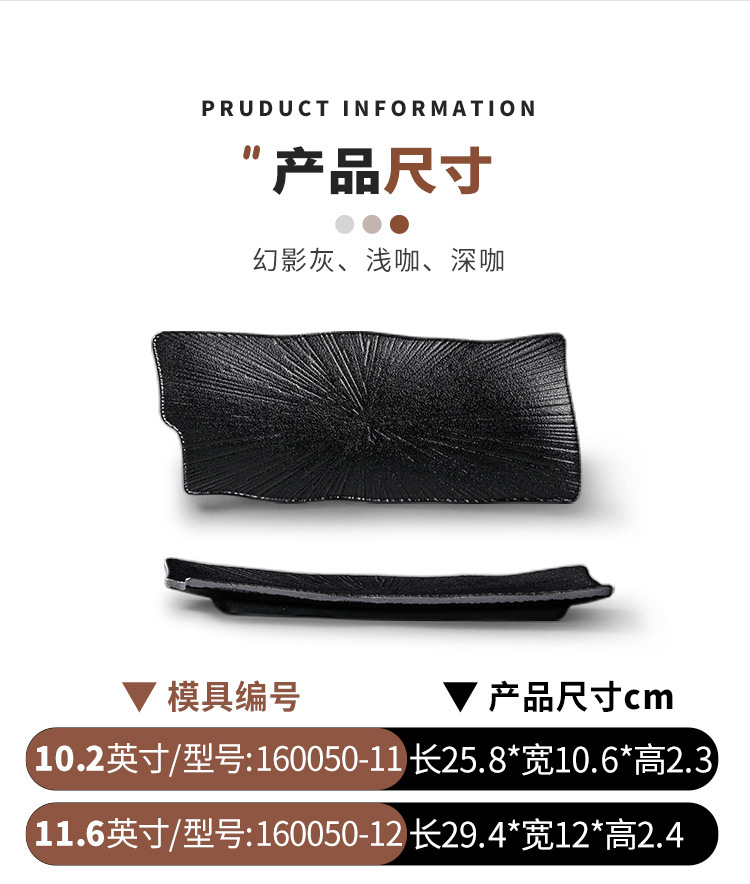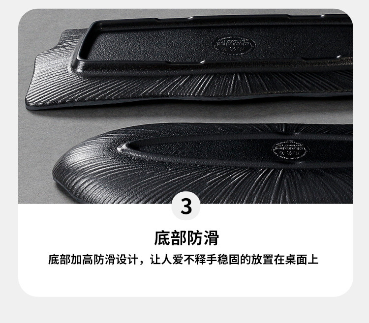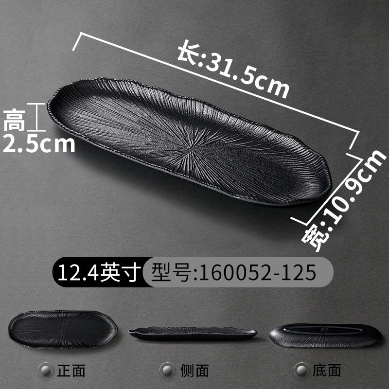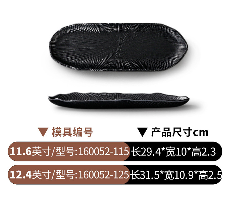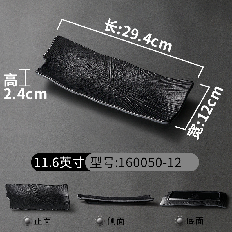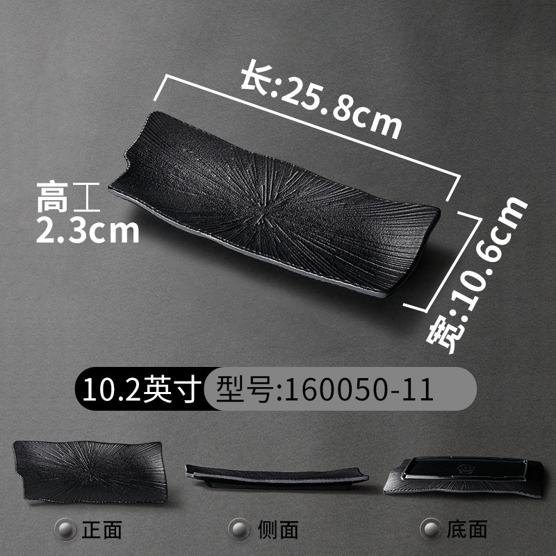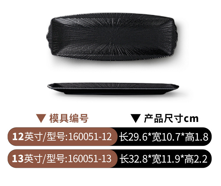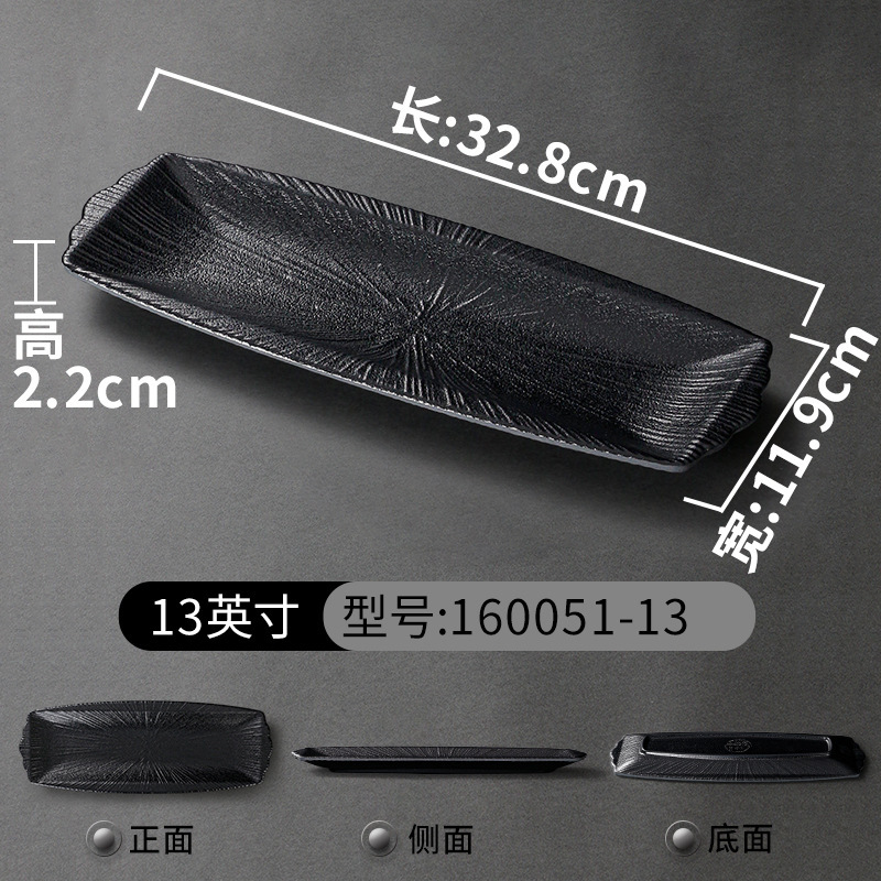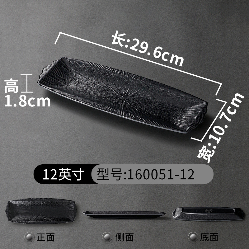 멜라민 식기 검은 모방 도자기 초밥 접시 플라스틱 접시 냄비 레스토랑 긴 접시 바베큐 접시 상업 요리 도매