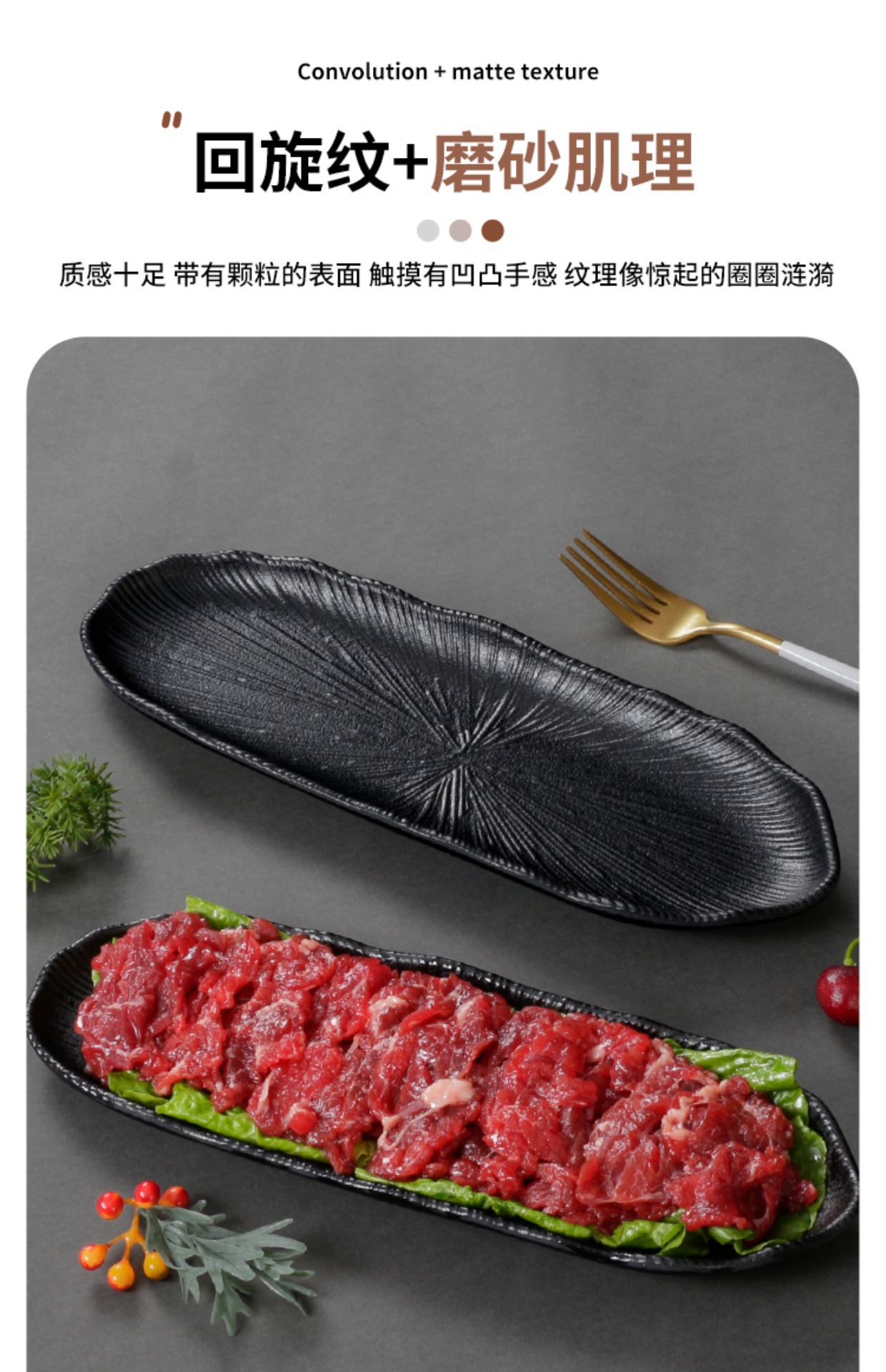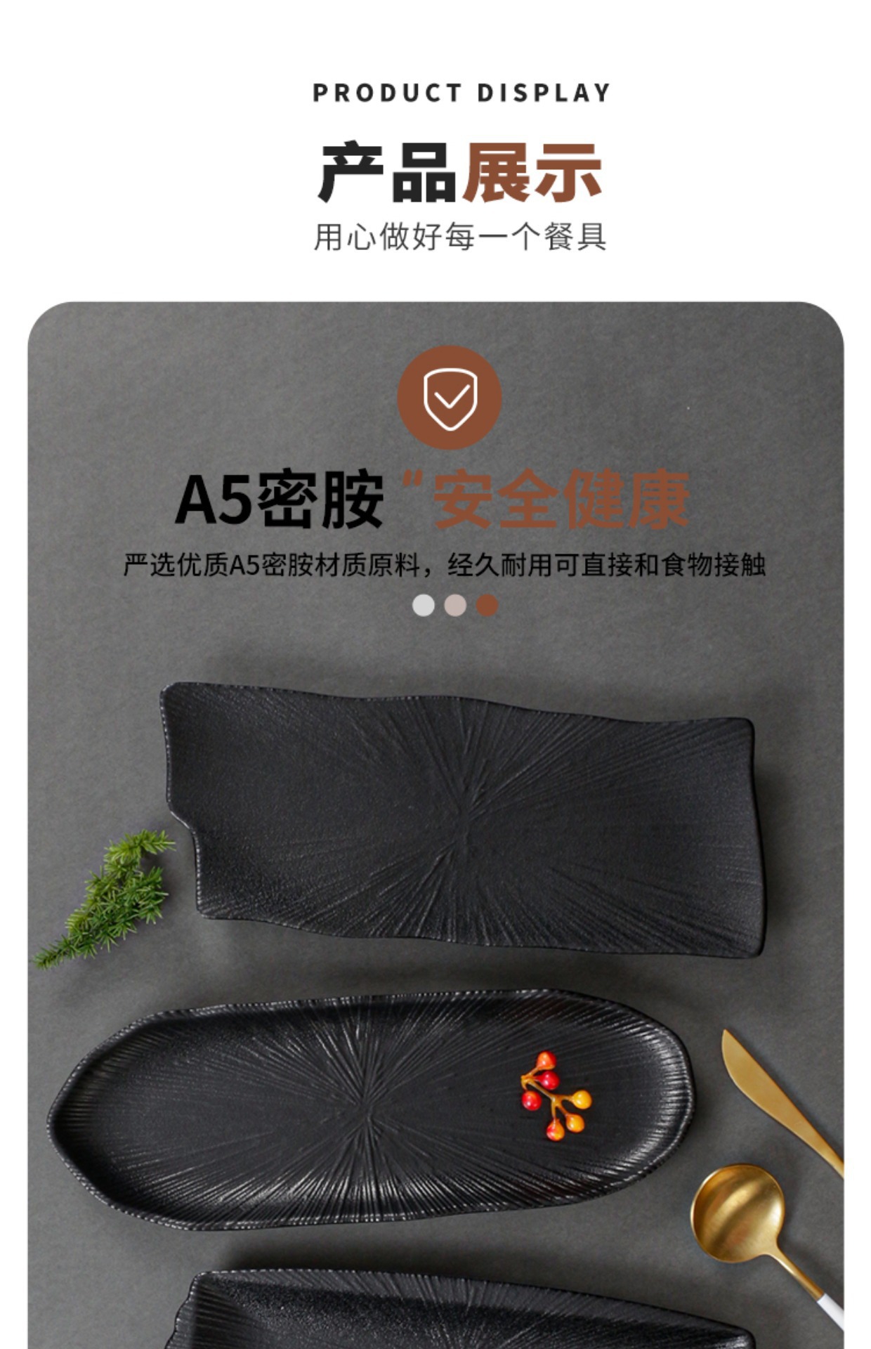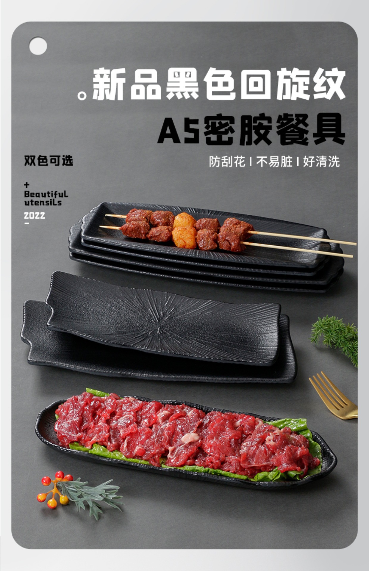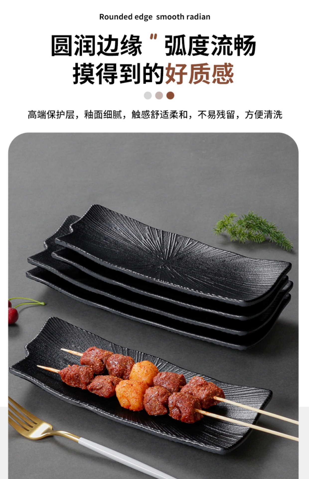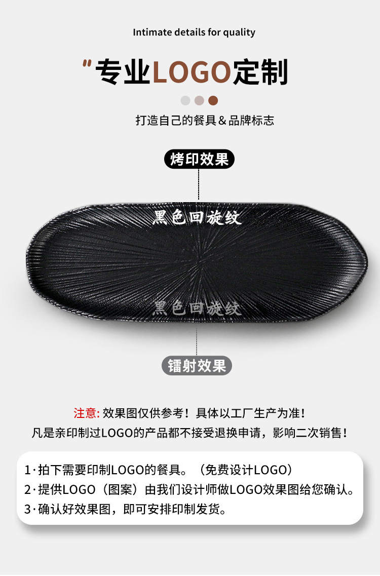멜라민 식기 검은 모방 도자기 초밥 접시 플라스틱 접시 냄비 레스토랑 긴 접시 바베큐 접시 상업 요리 도매