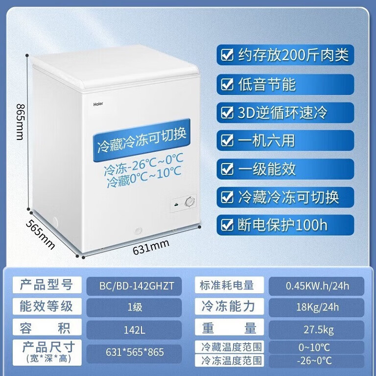 하이얼(하이얼) 100/142/200/소형 냉동고 가정용 신선 보관고 도매 에너지 절약스토어 가기