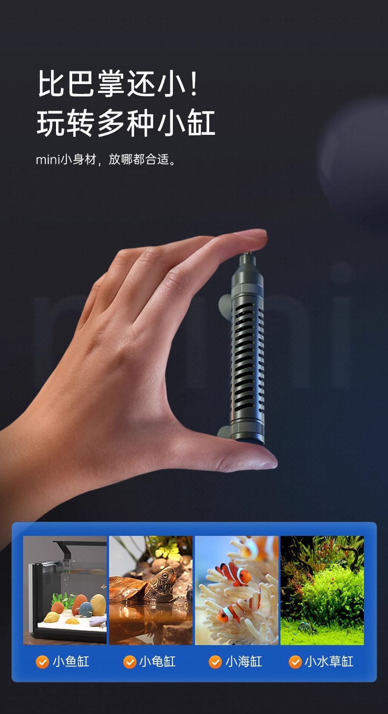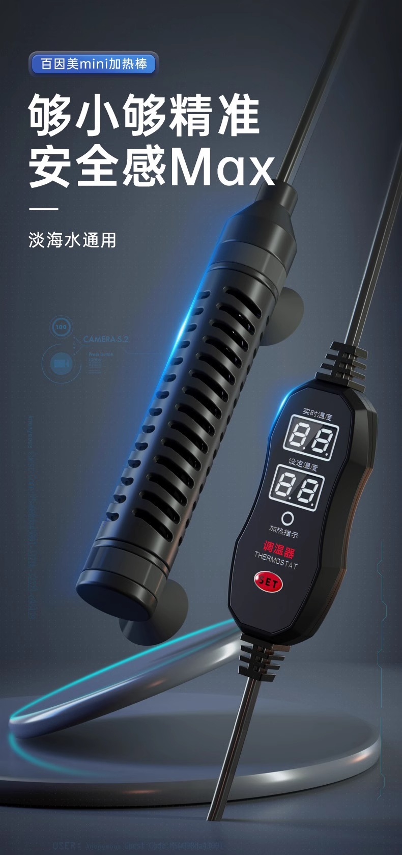 BIOZYM Baiyinmei 어항 가열봉 일정한 온도 난방 작은 짧은 미니 거북이 탱크 온도 제어 히팅로드스토어 가기