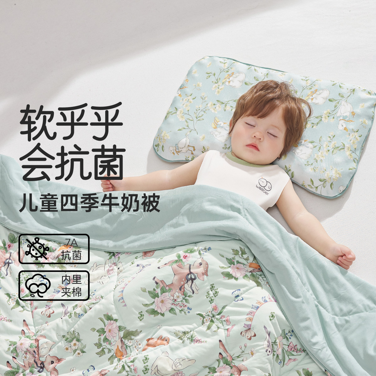 웰베루 아기 이불 A급 사계절 이불 유치원 가방 아기 어린이 낮잠 우유 실크 이불 통기성