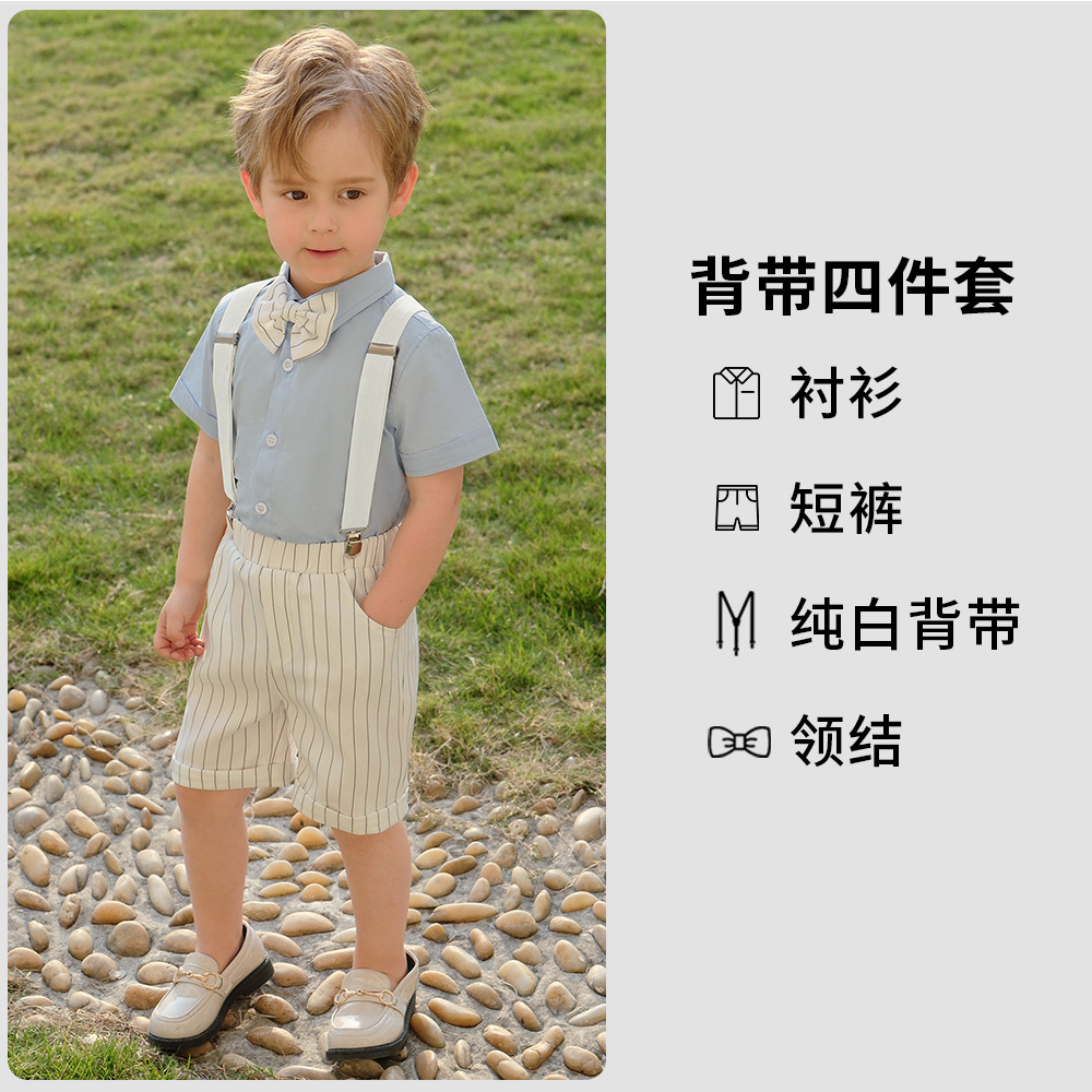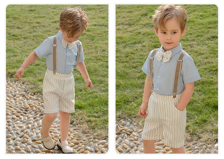어린이 원피스 여름 새로운 영국 스트라이프 멜빵 바지 남자의 아기의 어린이 날 활동 성능 짧은 소매 셔츠 세트스토어 가기