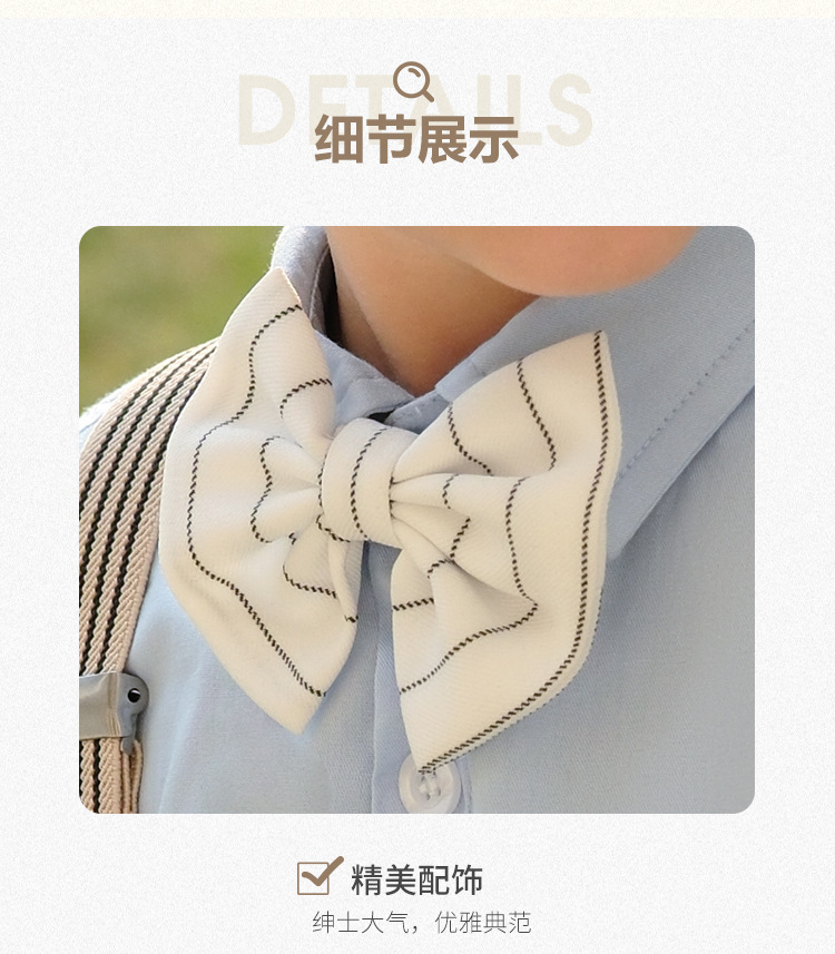 • 파란색 셔츠 + 흰색 줄무늬 반바지 (흰색 끈, 흰색 넥타이 포함)