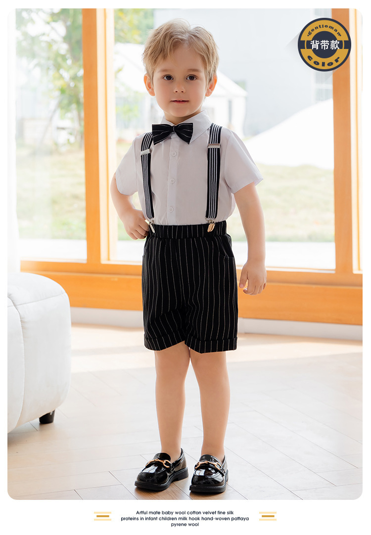 어린이 원피스 여름 새로운 영국 스트라이프 멜빵 바지 남자의 아기의 어린이 날 활동 성능 짧은 소매 셔츠 세트