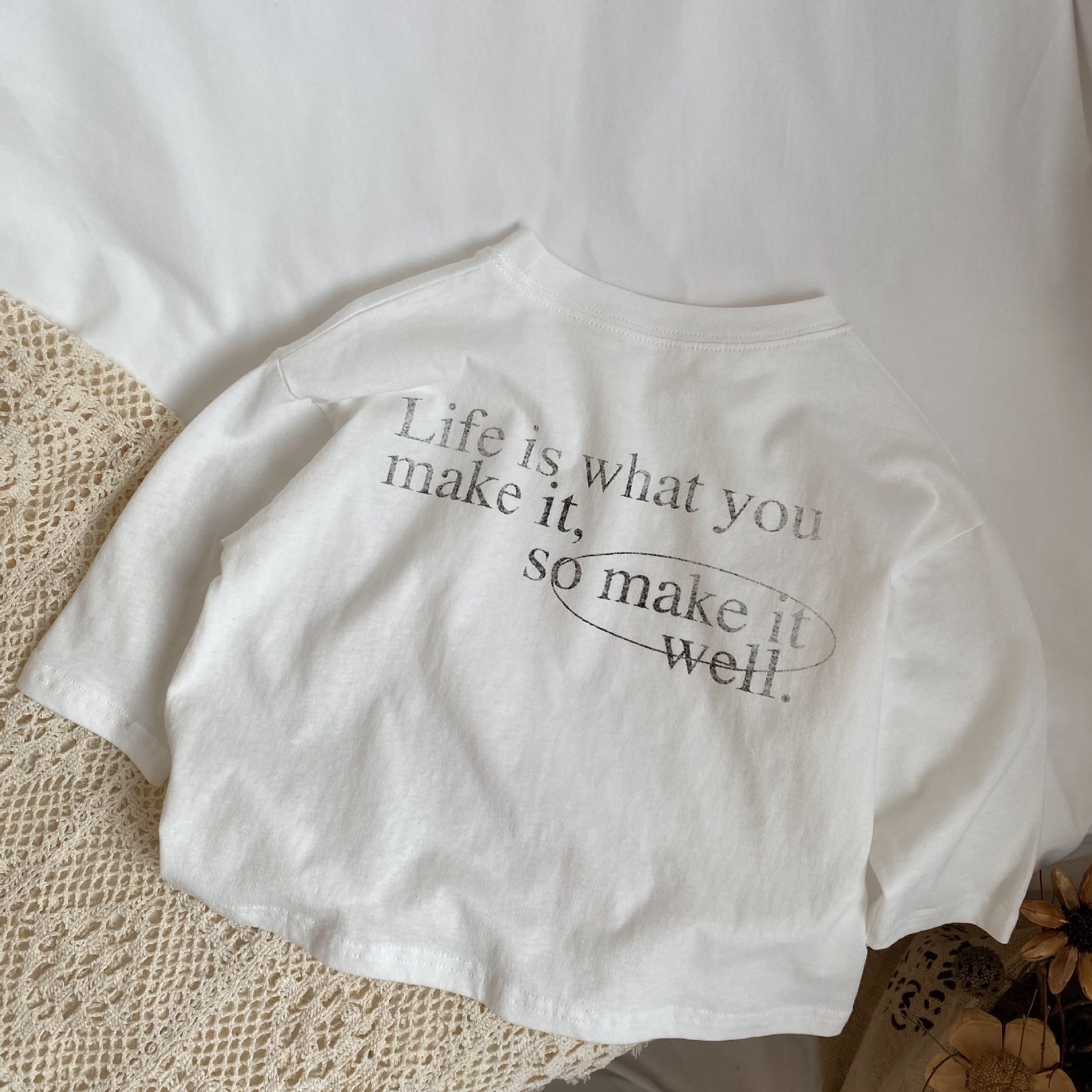 GL-kids 한국 스타일 가을 신작 아동용 백 레터 워시 피부 친화적인 기본 긴팔 티셔츠 유니섹스 탑