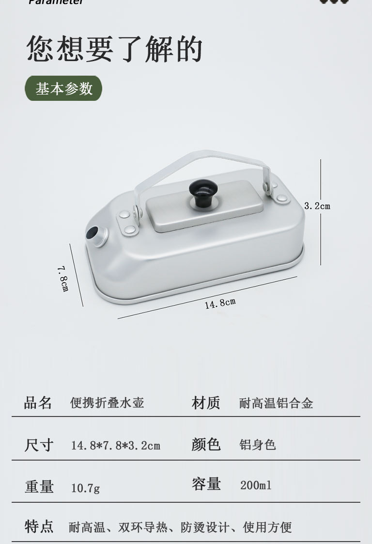 야외 캠핑 알루미늄 합금 주전자 휴대용 접이식 주전자 일본식 주전자 캠핑 물 끓는 차 커피 포트