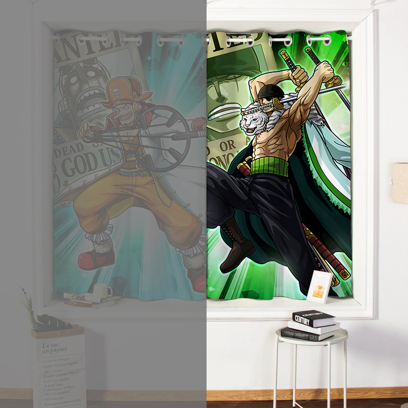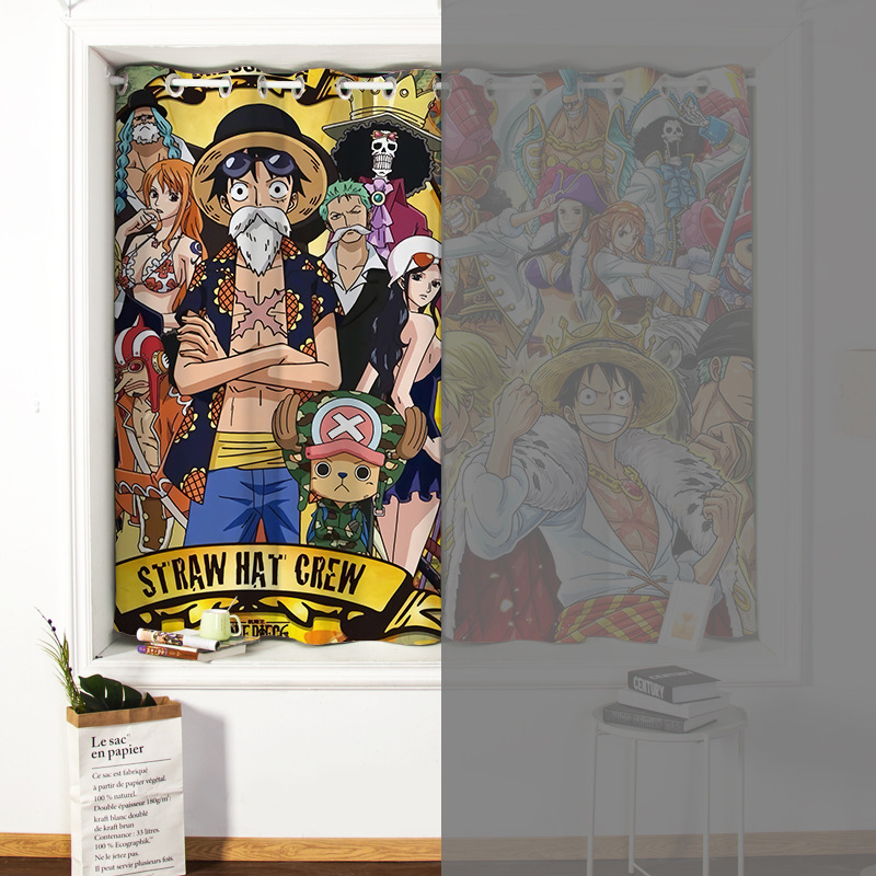 Keqiao 원피스 플로팅 창 짧은 커튼 만화 애니메이션 루피 학생 기숙사 침실 거실 플로팅 창 바닥 창