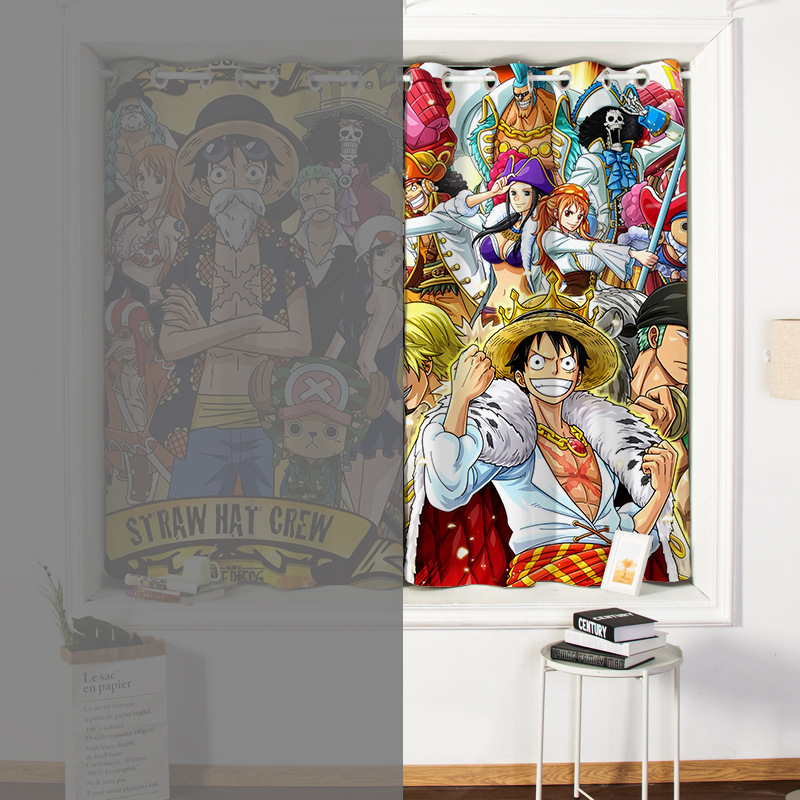 Keqiao 원피스 플로팅 창 짧은 커튼 만화 애니메이션 루피 학생 기숙사 침실 거실 플로팅 창 바닥 창스토어 가기