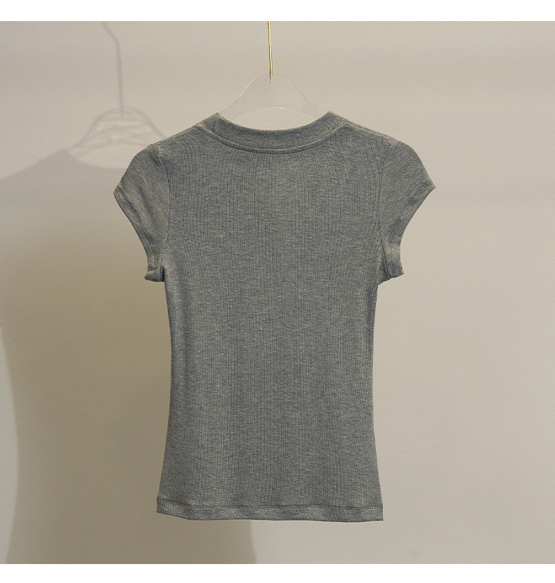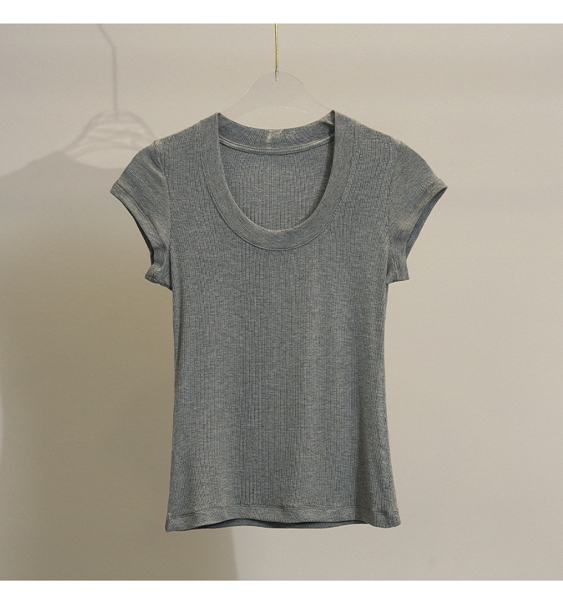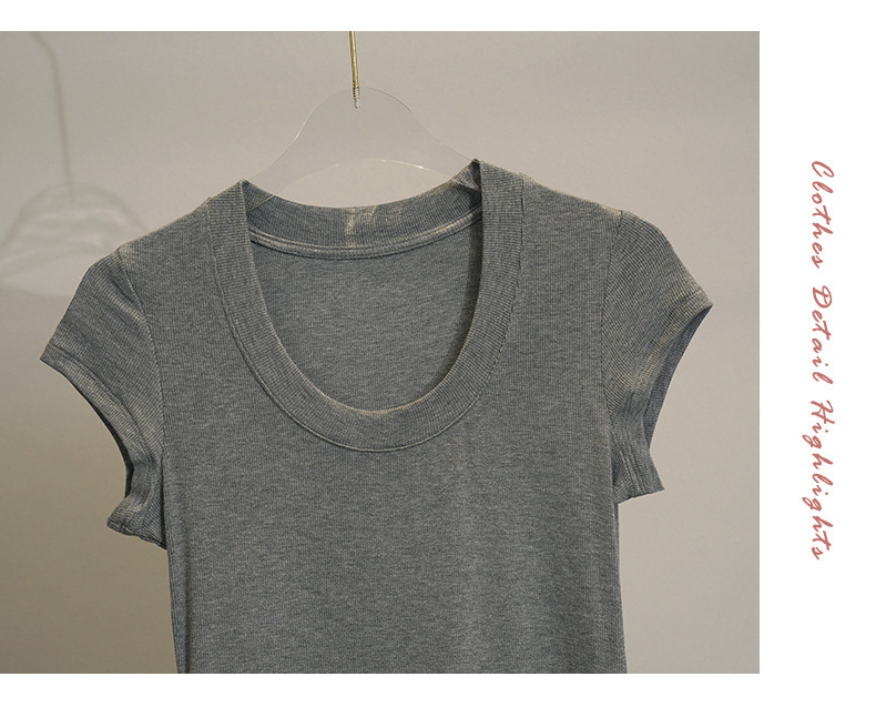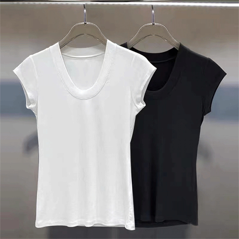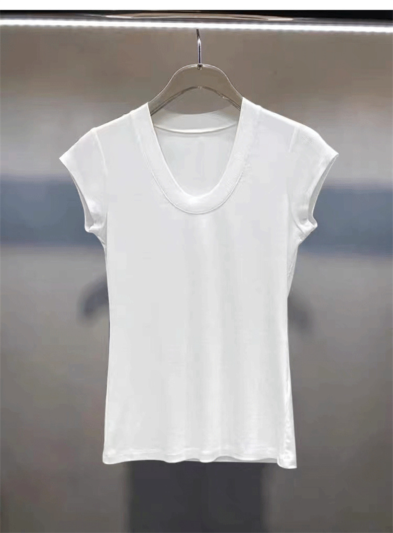 화이트 라운드 넥 스레드 반팔 티셔츠 여성용 틈새 2023 여름 새로운 슬림 핏 슬리밍 코튼 숄더 탑스토어 가기