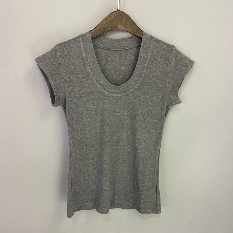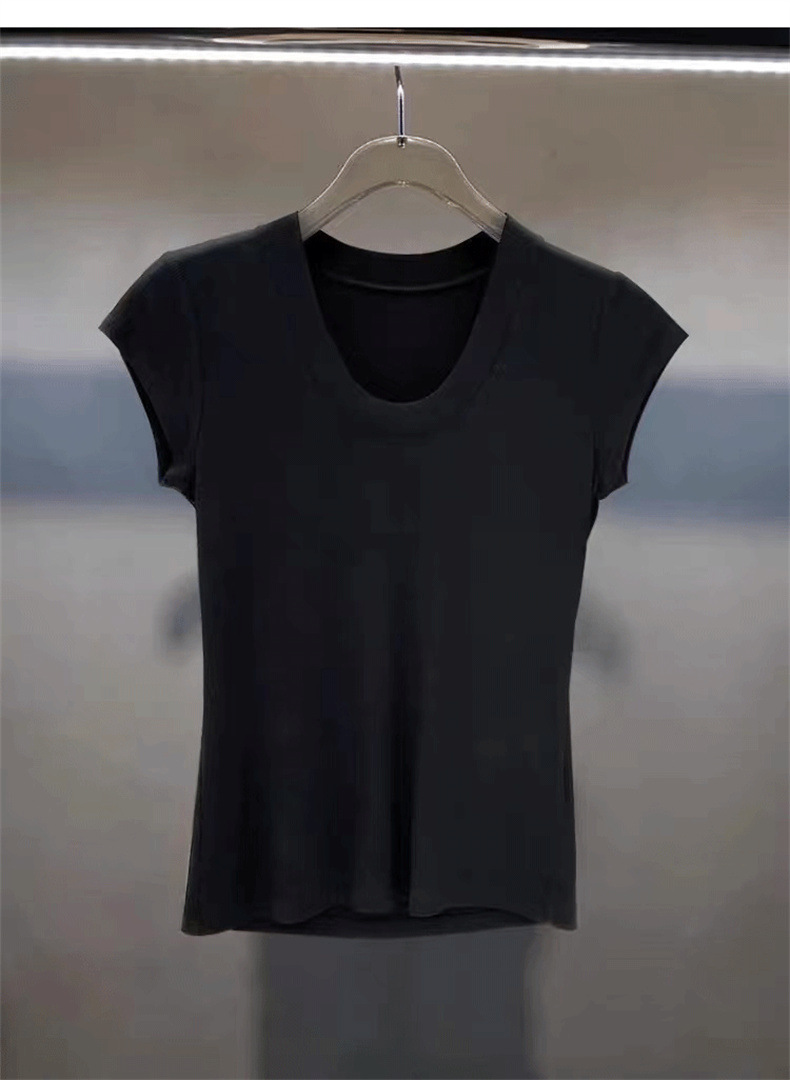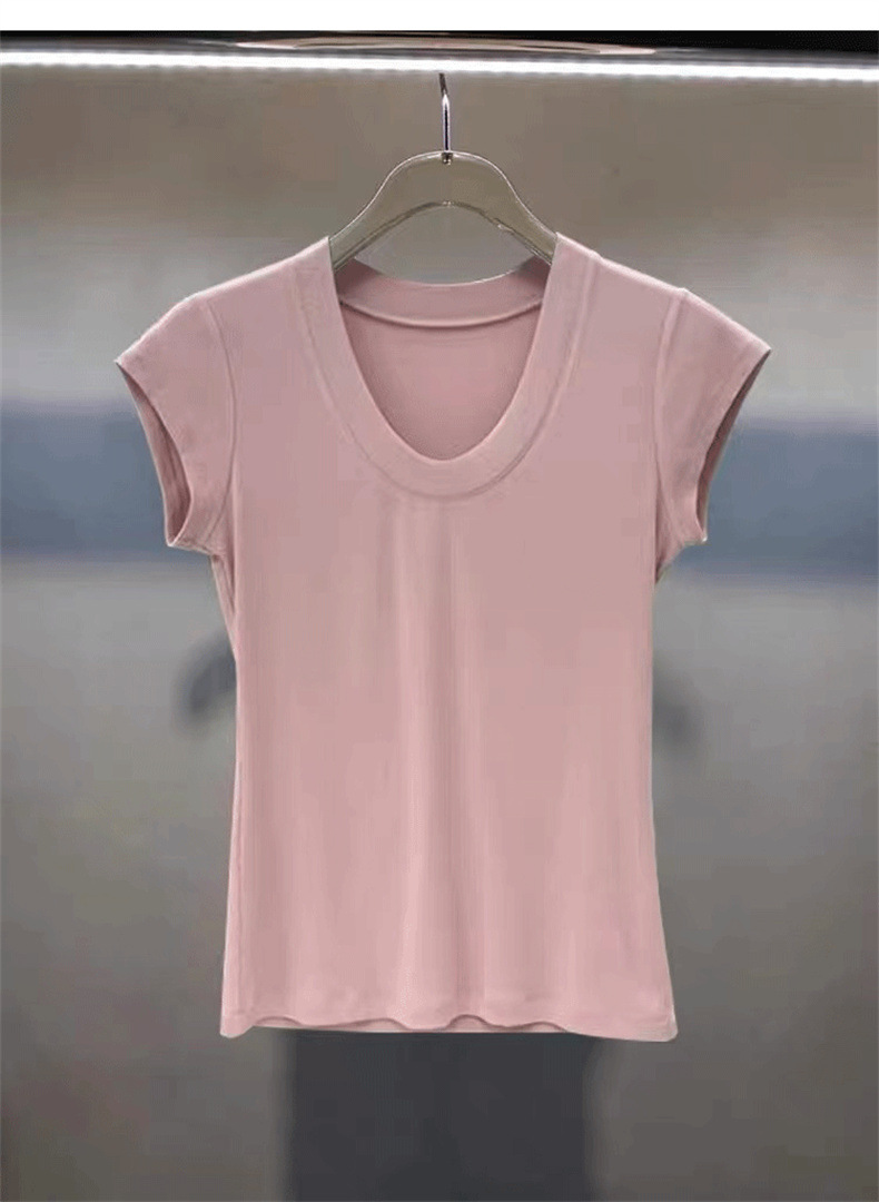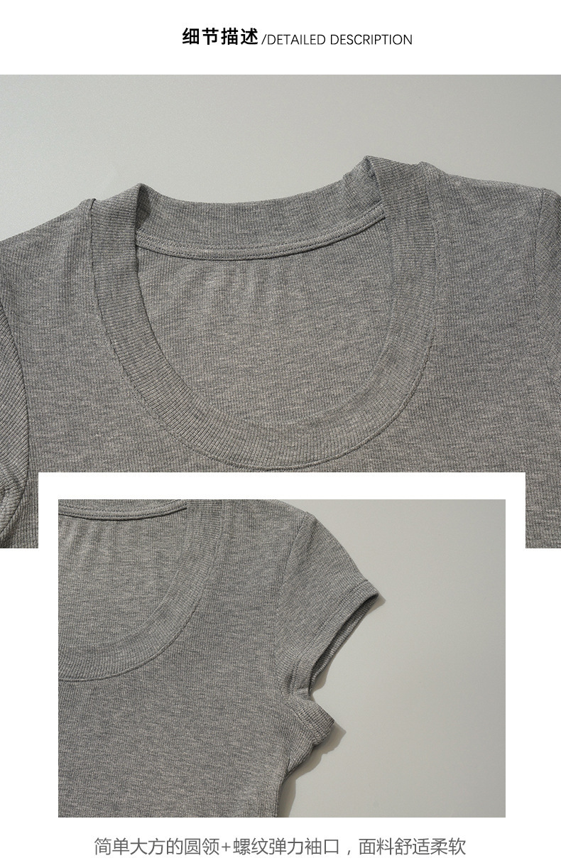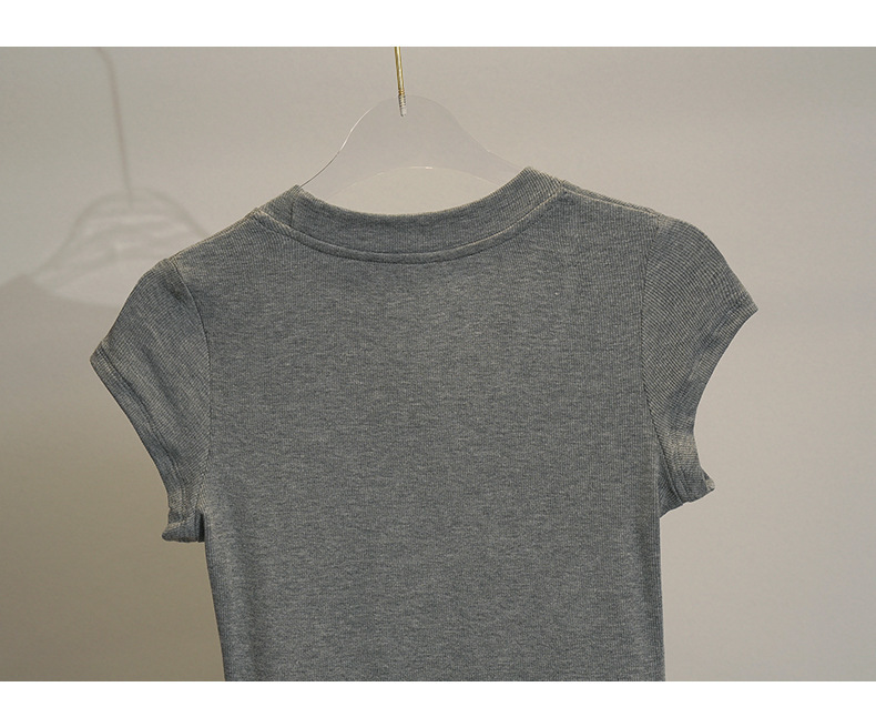 화이트 라운드 넥 스레드 반팔 티셔츠 여성용 틈새 2023 여름 새로운 슬림 핏 슬리밍 코튼 숄더 탑스토어 가기