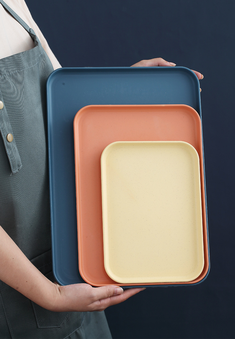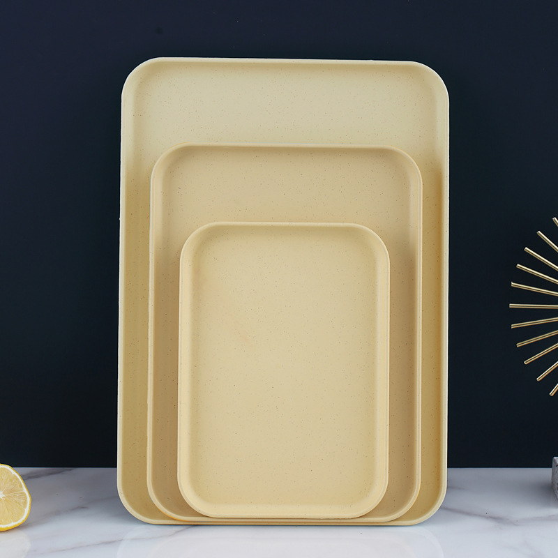밀 짚 플라스틱 접시 사각형 트레이 높은 색상 값 in 바람 가정용 트레이 세트 과일 접시 도매스토어 가기