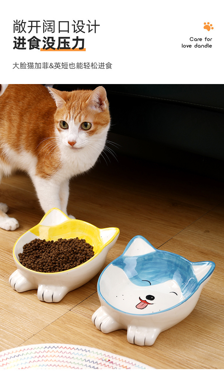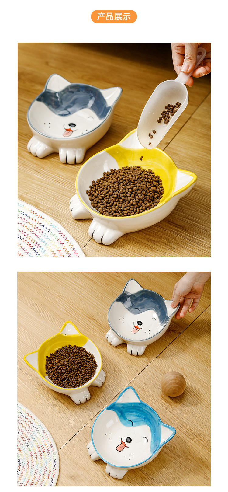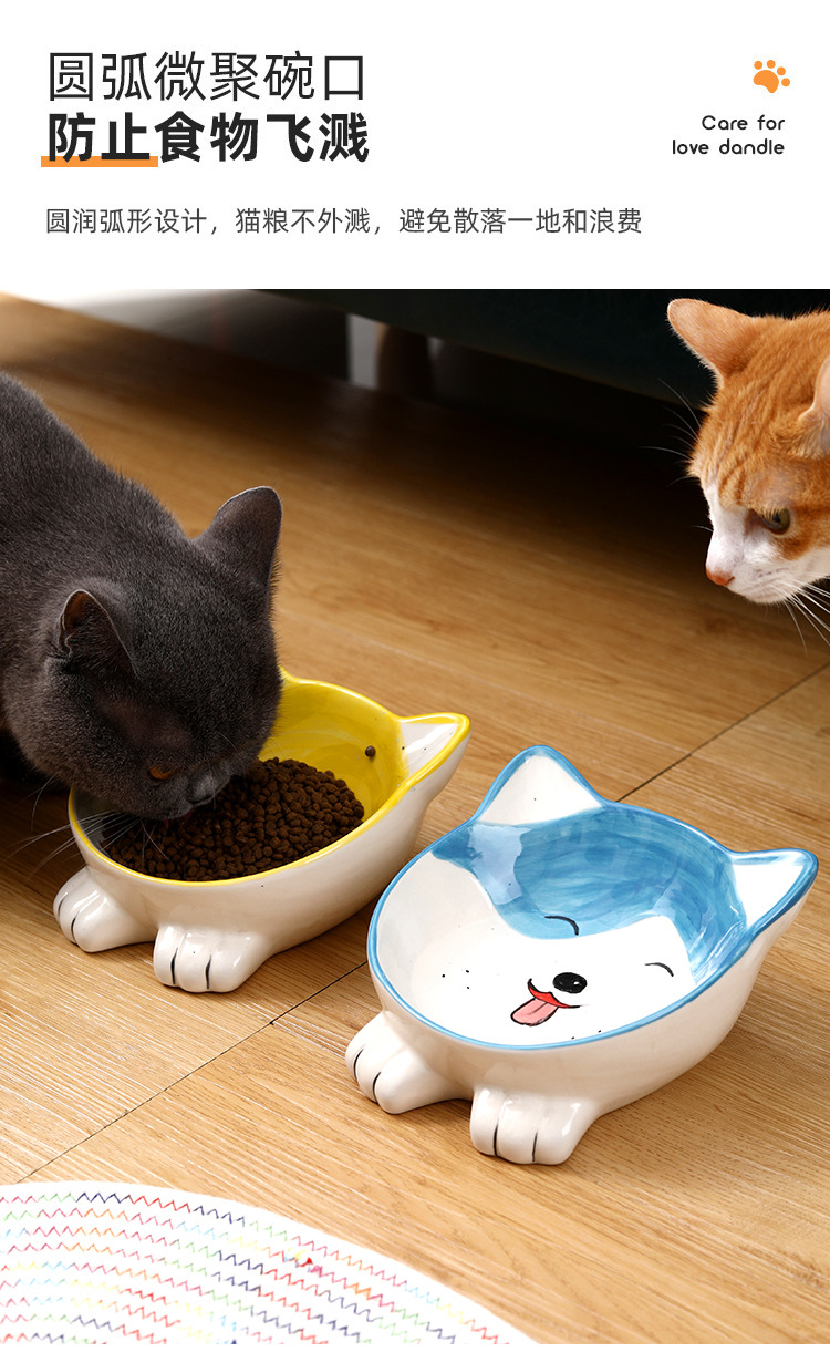 고양이 그릇 애완 동물 세라믹 고양이 분지 귀여운 마시는 그릇 고양이 음식 그릇 애완 동물 그릇 일본식 높은 발 목 보호 끈적 강아지 그릇스토어 가기