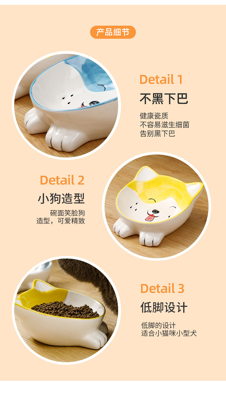 고양이 그릇 애완 동물 세라믹 고양이 분지 귀여운 마시는 그릇 고양이 음식 그릇 애완 동물 그릇 일본식 높은 발 목 보호 끈적 강아지 그릇