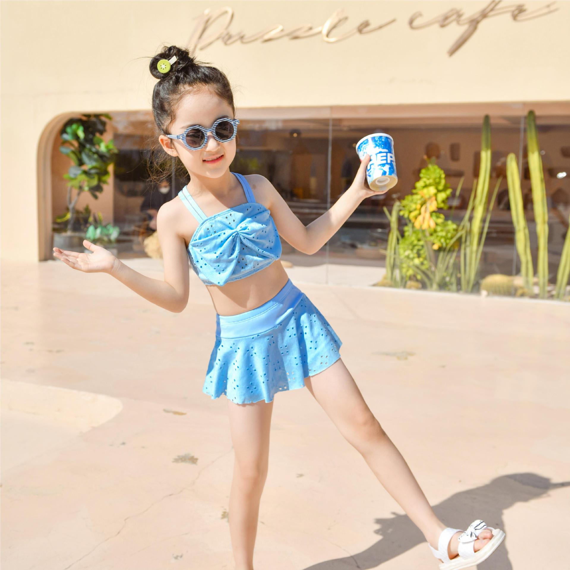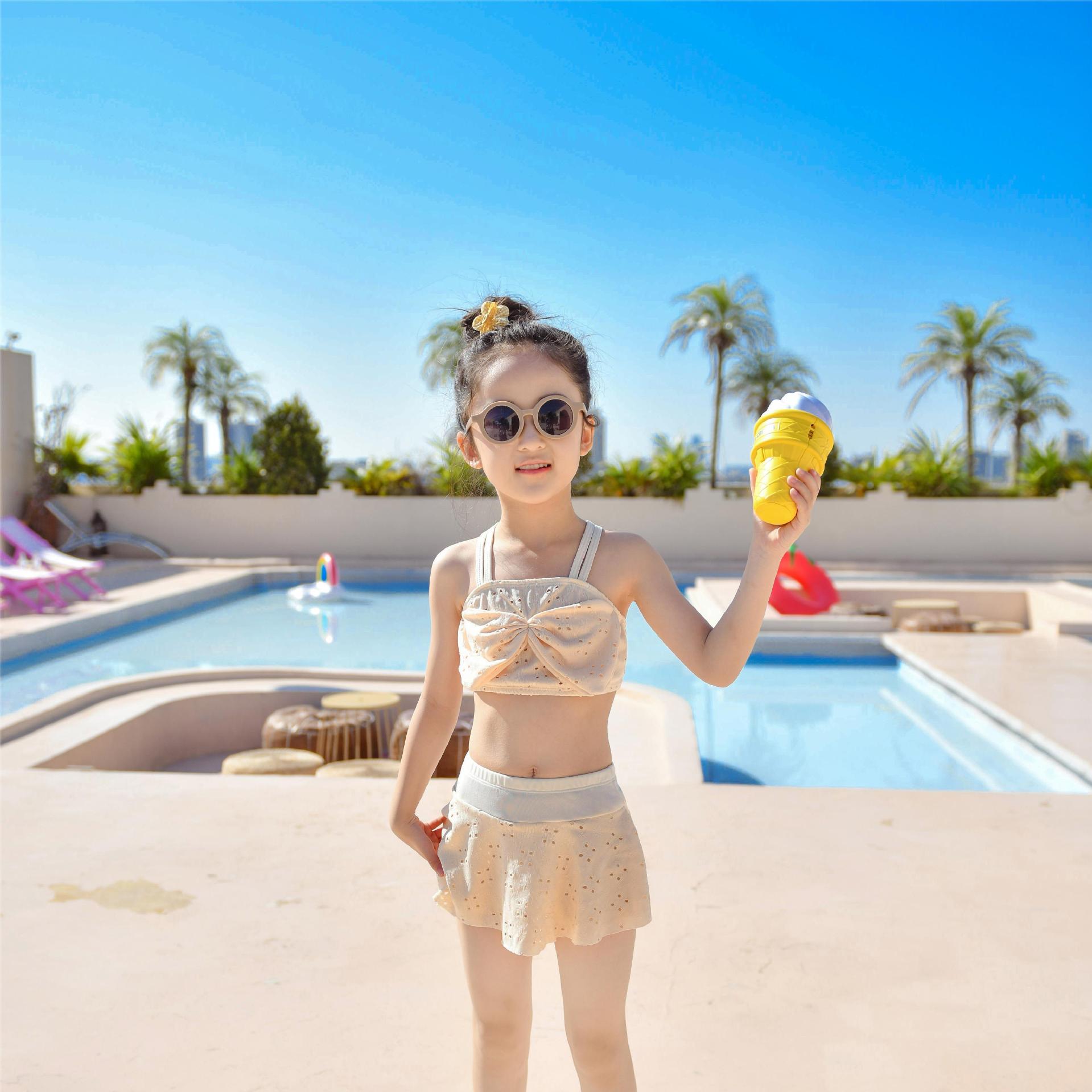 어린이 수영복 온천 새로운 달콤한 작은 신선한 수영복 어린이 스플릿 스커트 투피스 수영 수영복