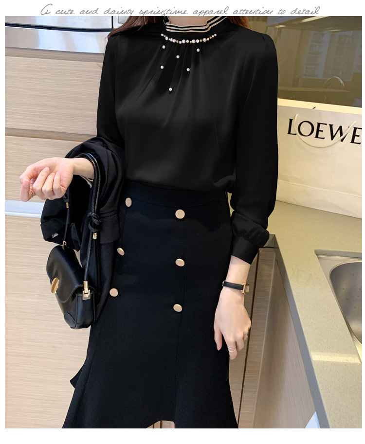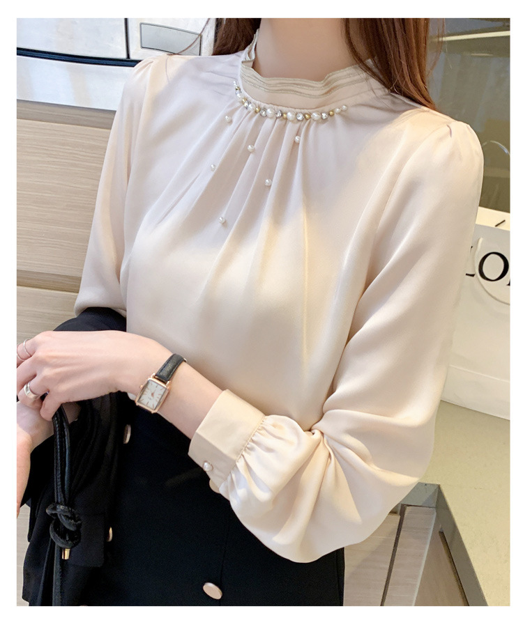 여름 느슨한 풀오버 긴 한국식 자외선 차단제 스탠드 칼라 단색 흰색 신선한 달콤한 쉬폰 쉬폰 셔츠스토어 가기