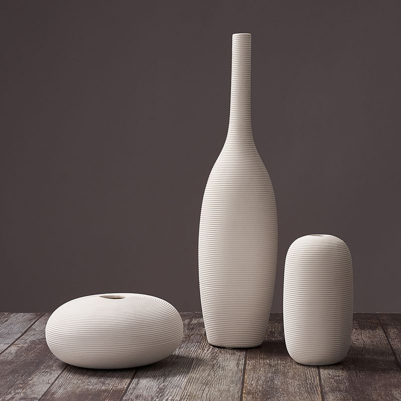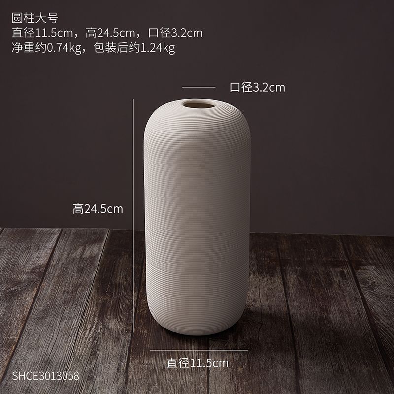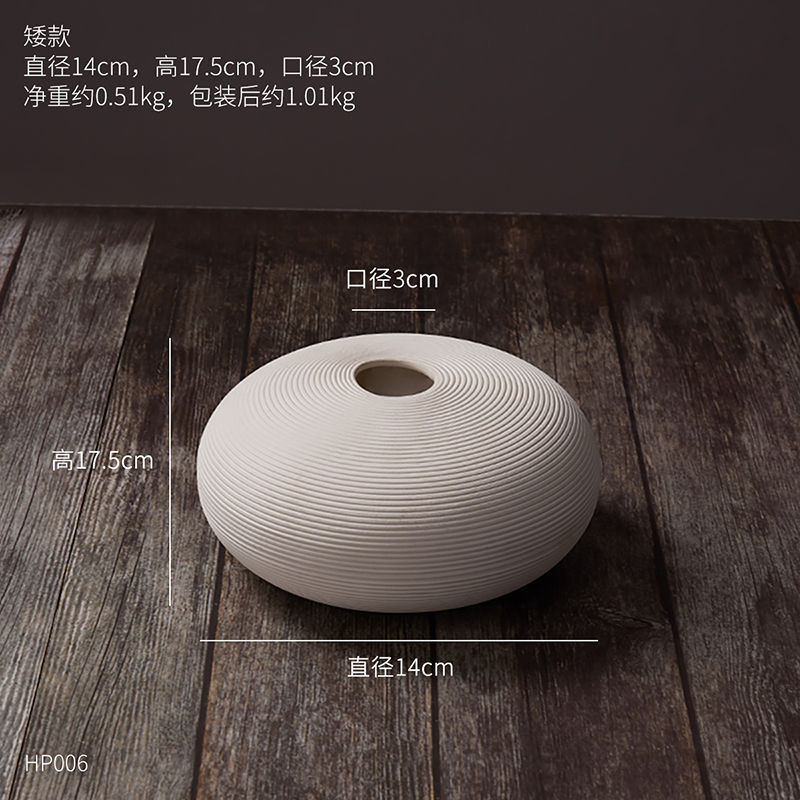 북유럽 일반 구운 흰색 세라믹 꽃병 장식품 간단한 꽃 배열 말린 꽃기구 거실 홈 부드러운 장식