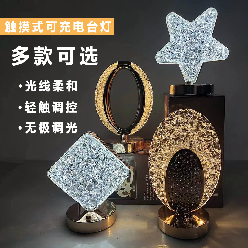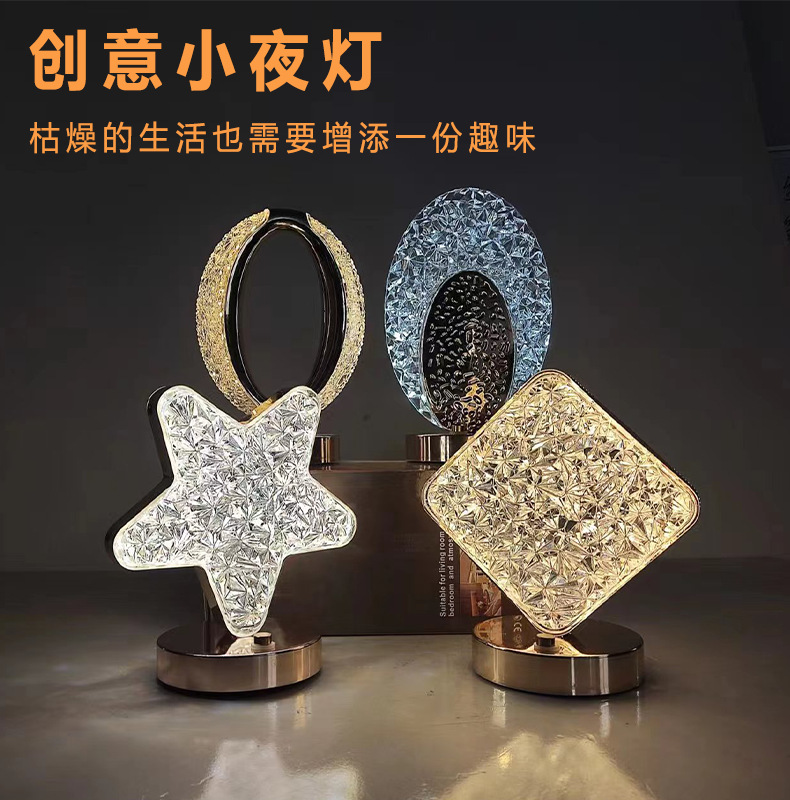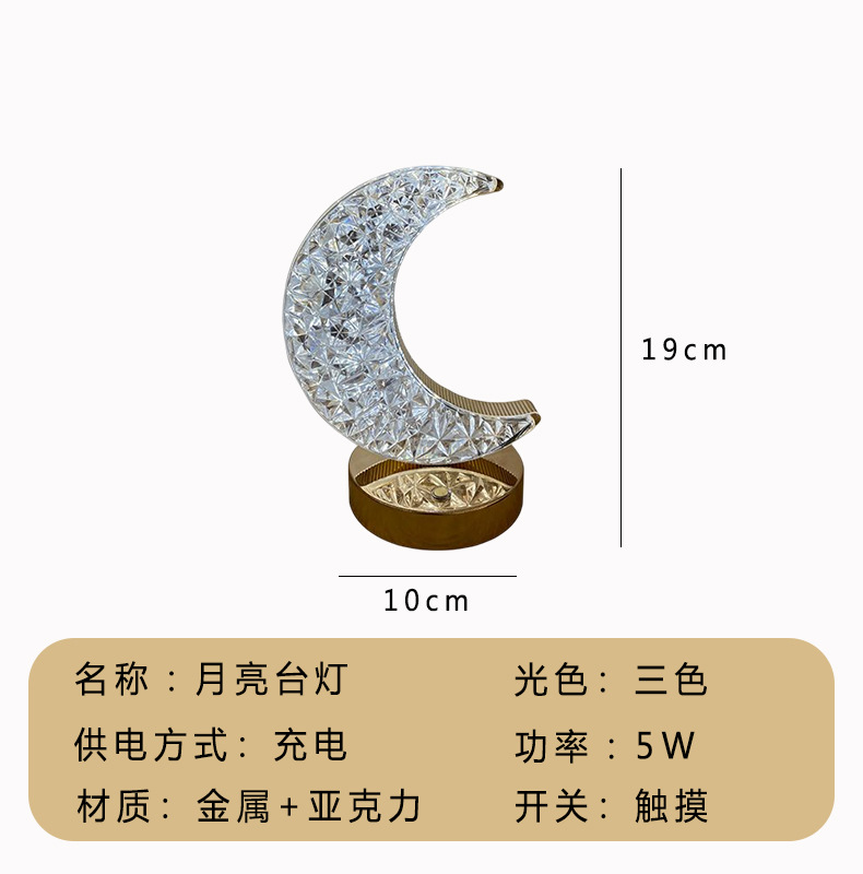 Led 간단한 창조적 인 테이블 램프 스타 문 분위기 침실 충전 터치 침대 옆 램프 생일 선물 야간 조명스토어 가기