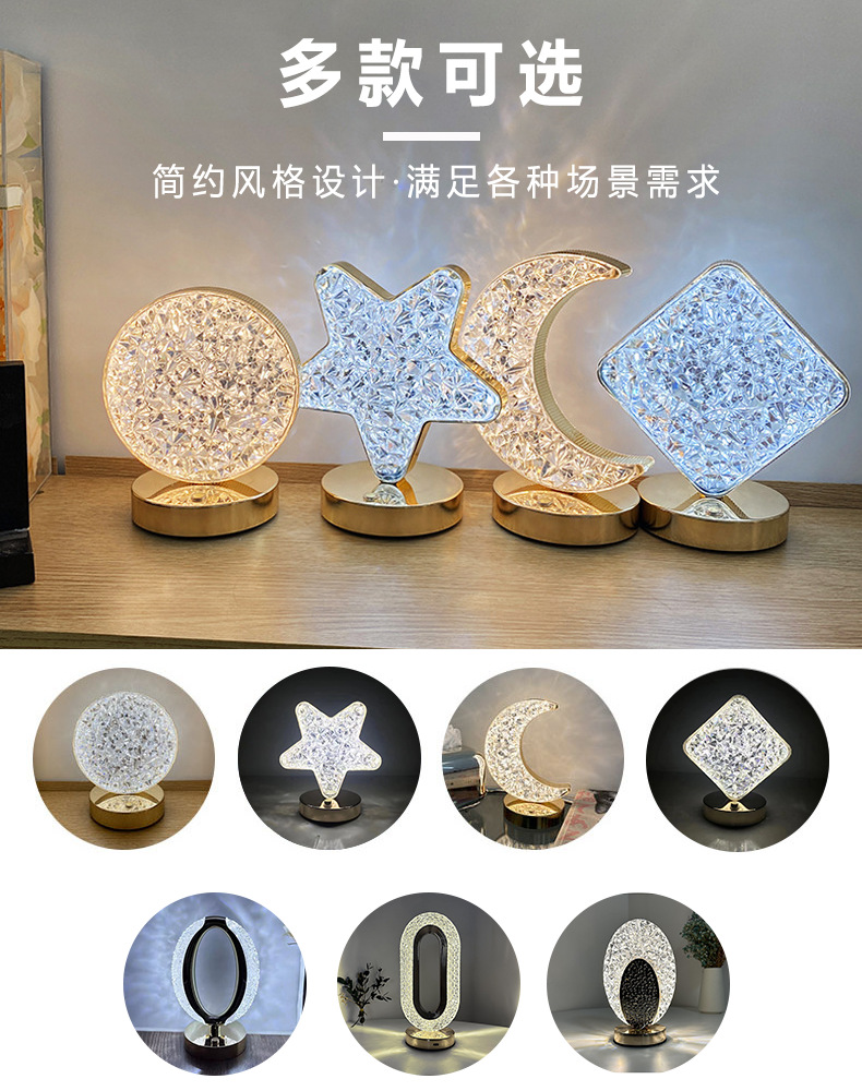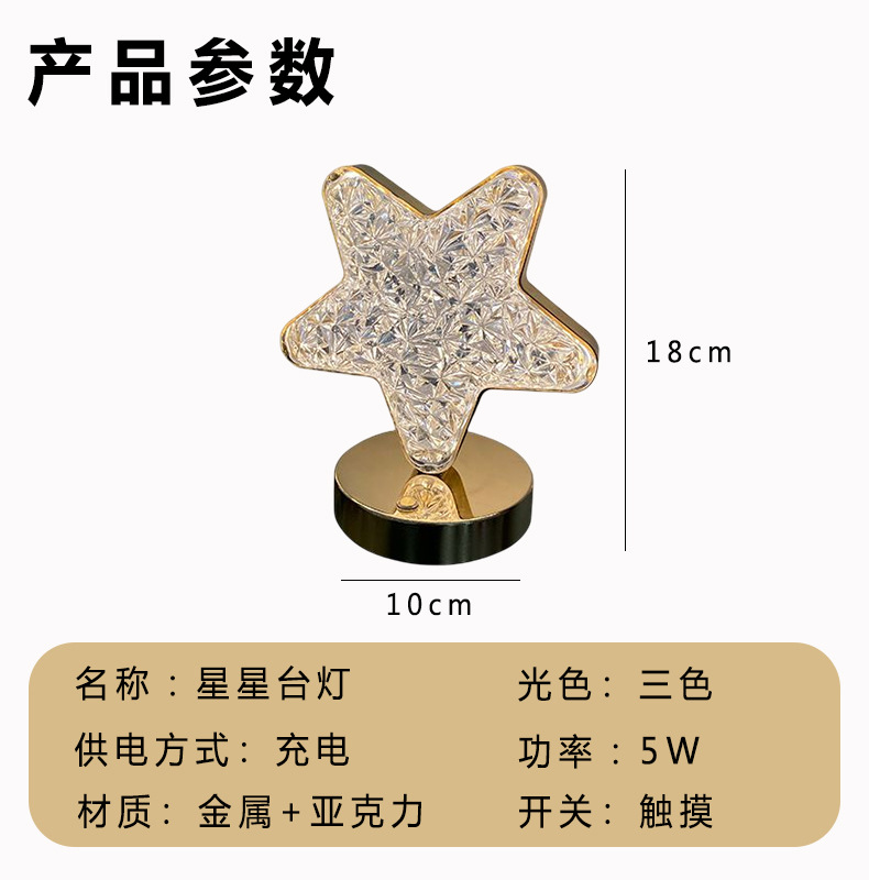 Led 간단한 창조적 인 테이블 램프 스타 문 분위기 침실 충전 터치 침대 옆 램프 생일 선물 야간 조명