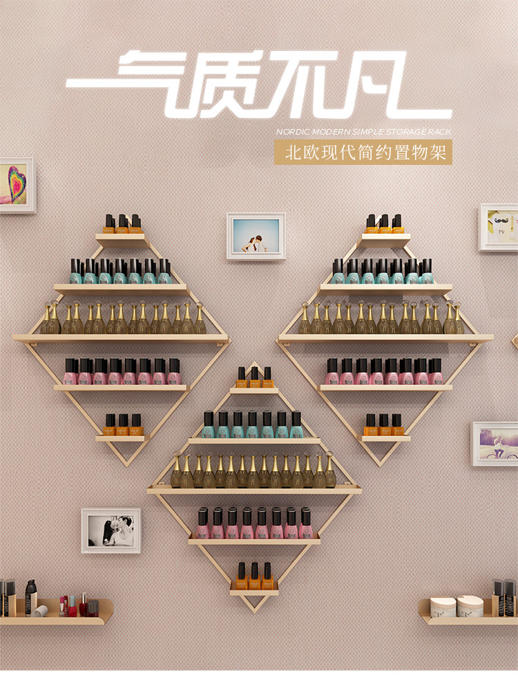 다이아몬드 골드 매니큐어 스토리지 랙 간단한 매니큐어 디스플레이 랙 스테인레스 스틸 삼각형 벽걸이 벽형 플레이트스토어 가기