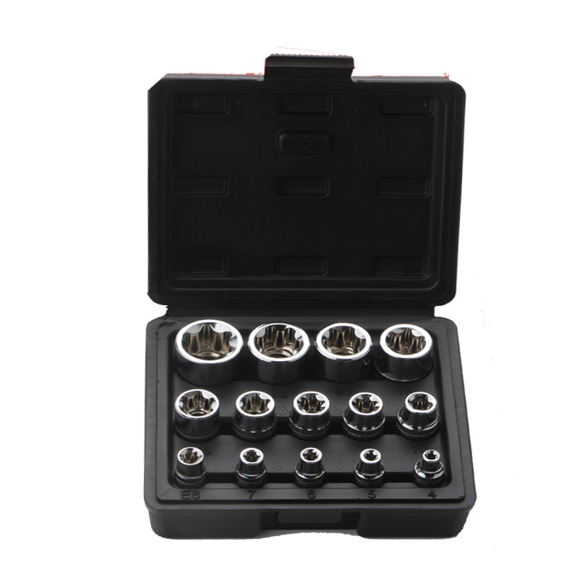 14 피스 E 형 소켓 세트 패턴 소켓 조합 렌치 큰 비행 중간 비행 소형 비행 자동차 e4-e24mm스토어 가기