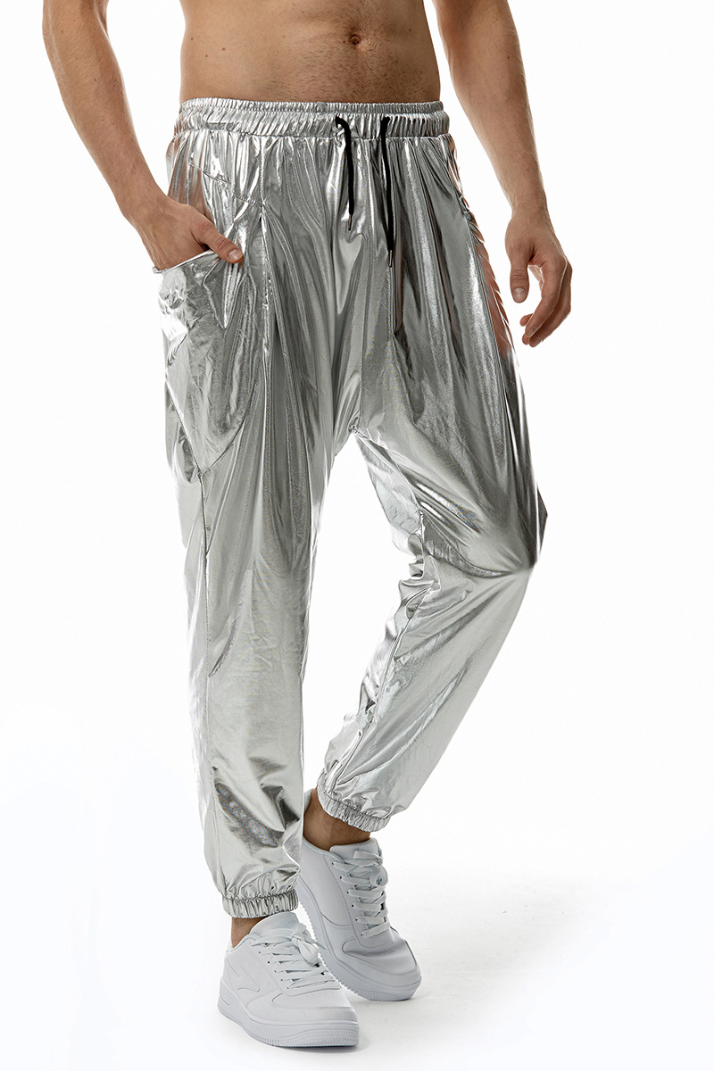 2023 여름 대외 무역 새로운 남자의 금속 반짝 조깅 바지 유럽 사이즈 남자 캐주얼 느슨한 바지