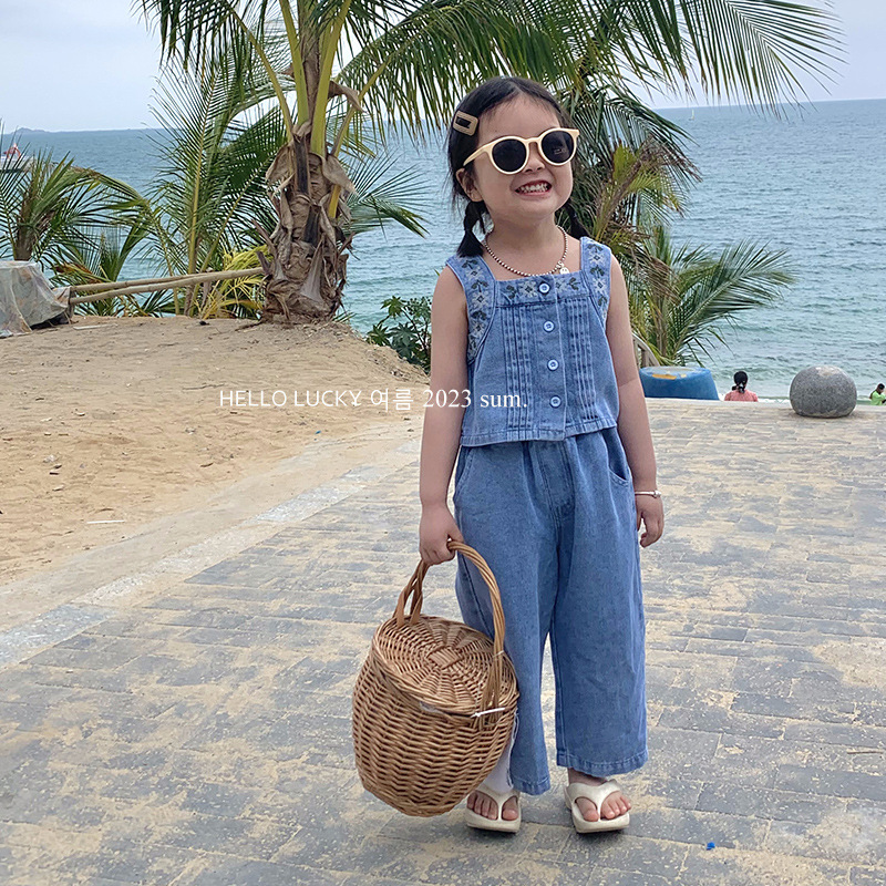 Miao Xuan 아동복 소녀 데님 세트 여름 2023 새로운 한국 아동 여름 얇은 캐주얼 투피스 패션스토어 가기