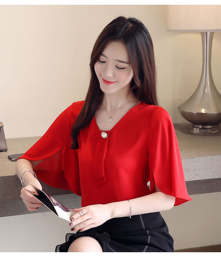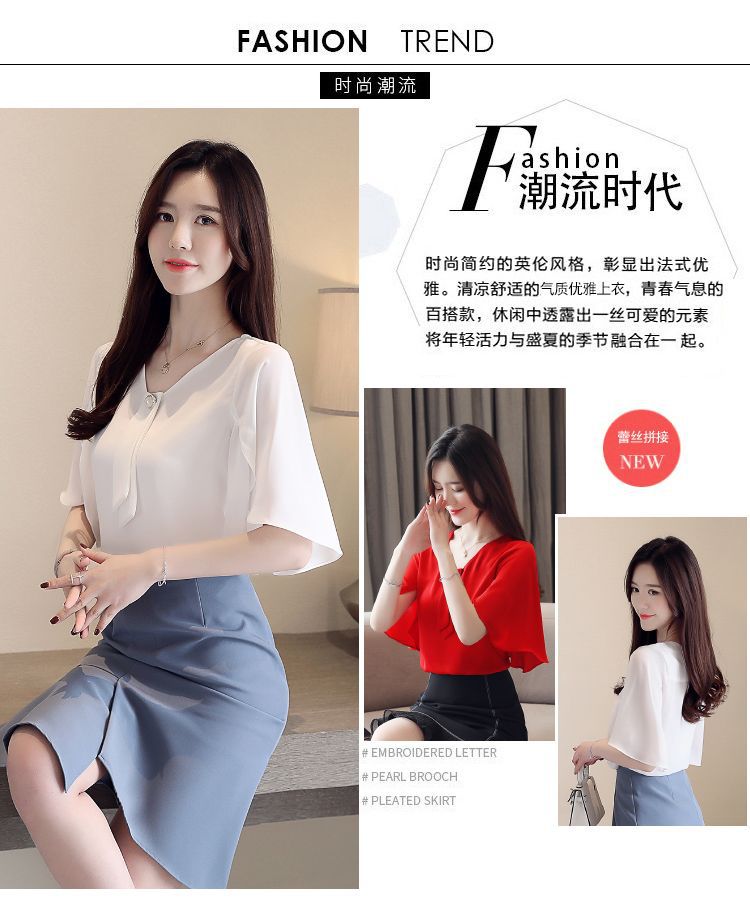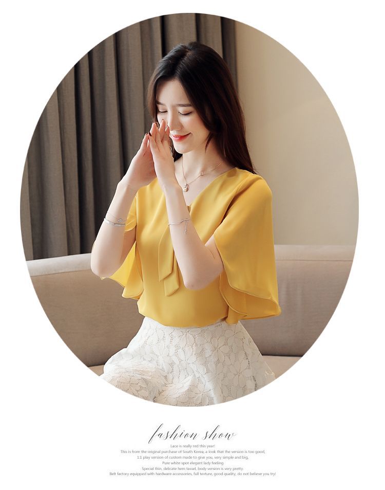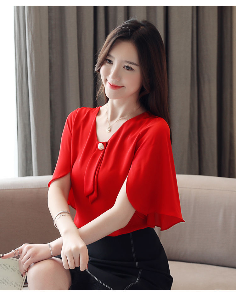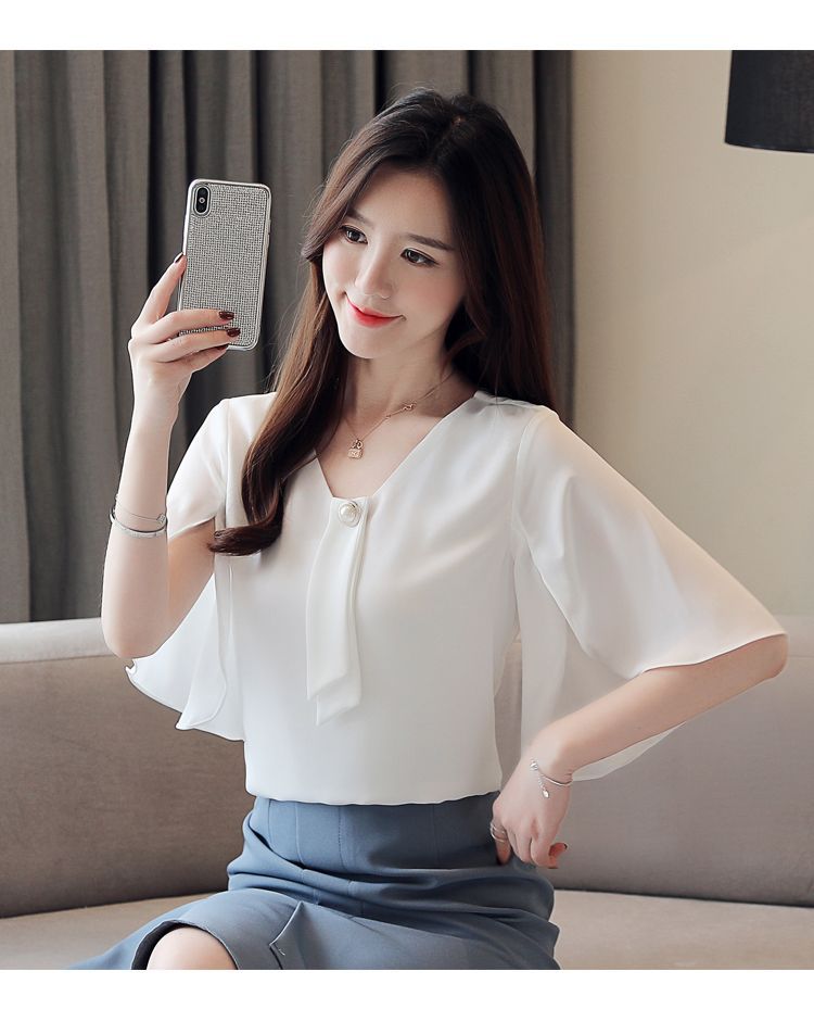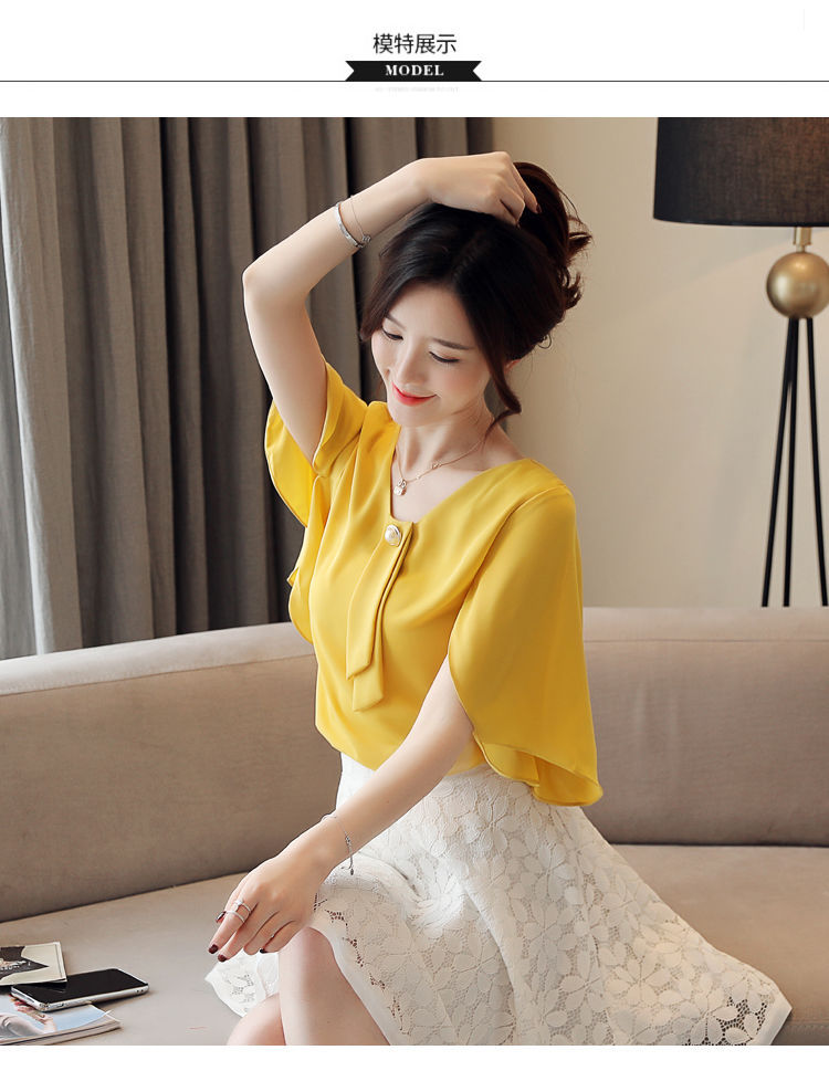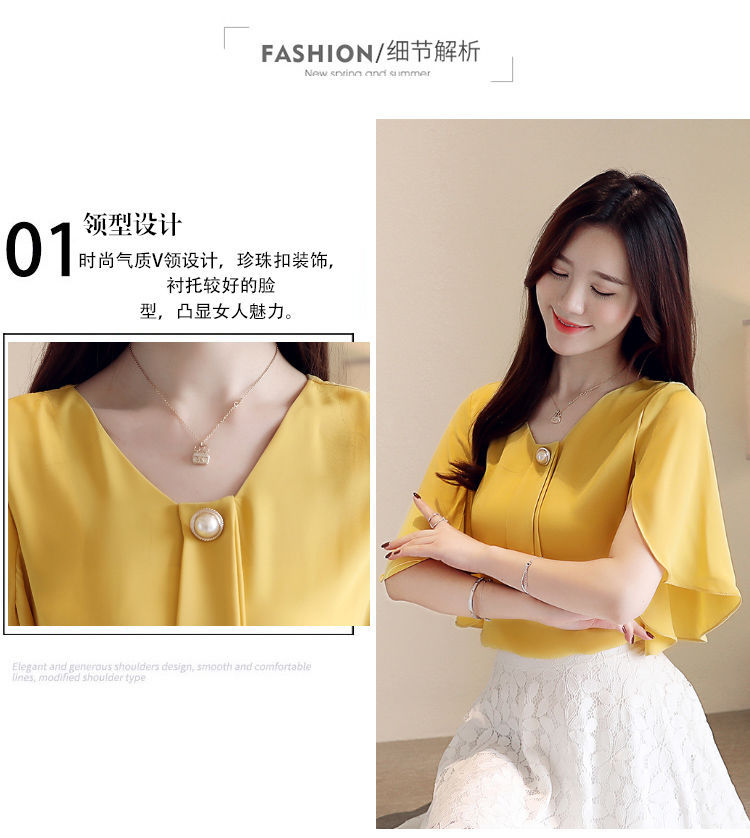 시폰 셔츠 여성 반팔 여름 2025 새로운 한국 스타일 기질 서양식 슬리밍 셔츠 배꼽 커버 탑