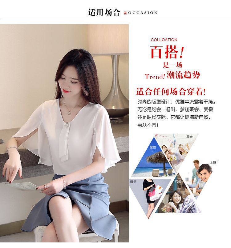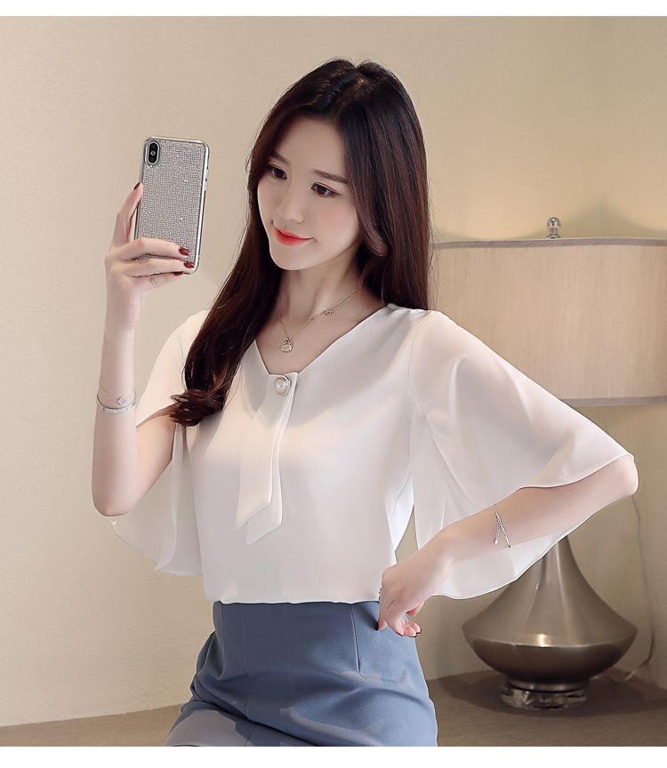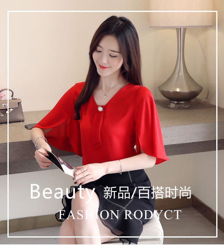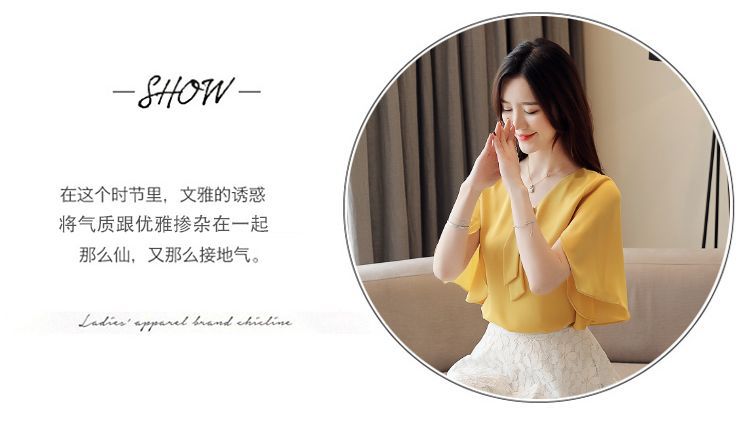 시폰 셔츠 여성 반팔 여름 2025 새로운 한국 스타일 기질 서양식 슬리밍 셔츠 배꼽 커버 탑스토어 가기