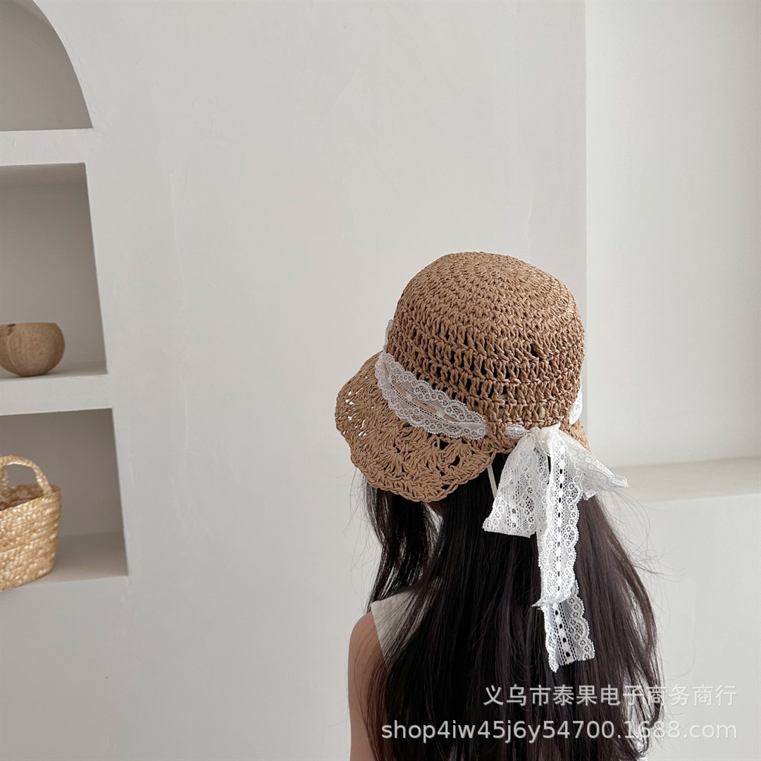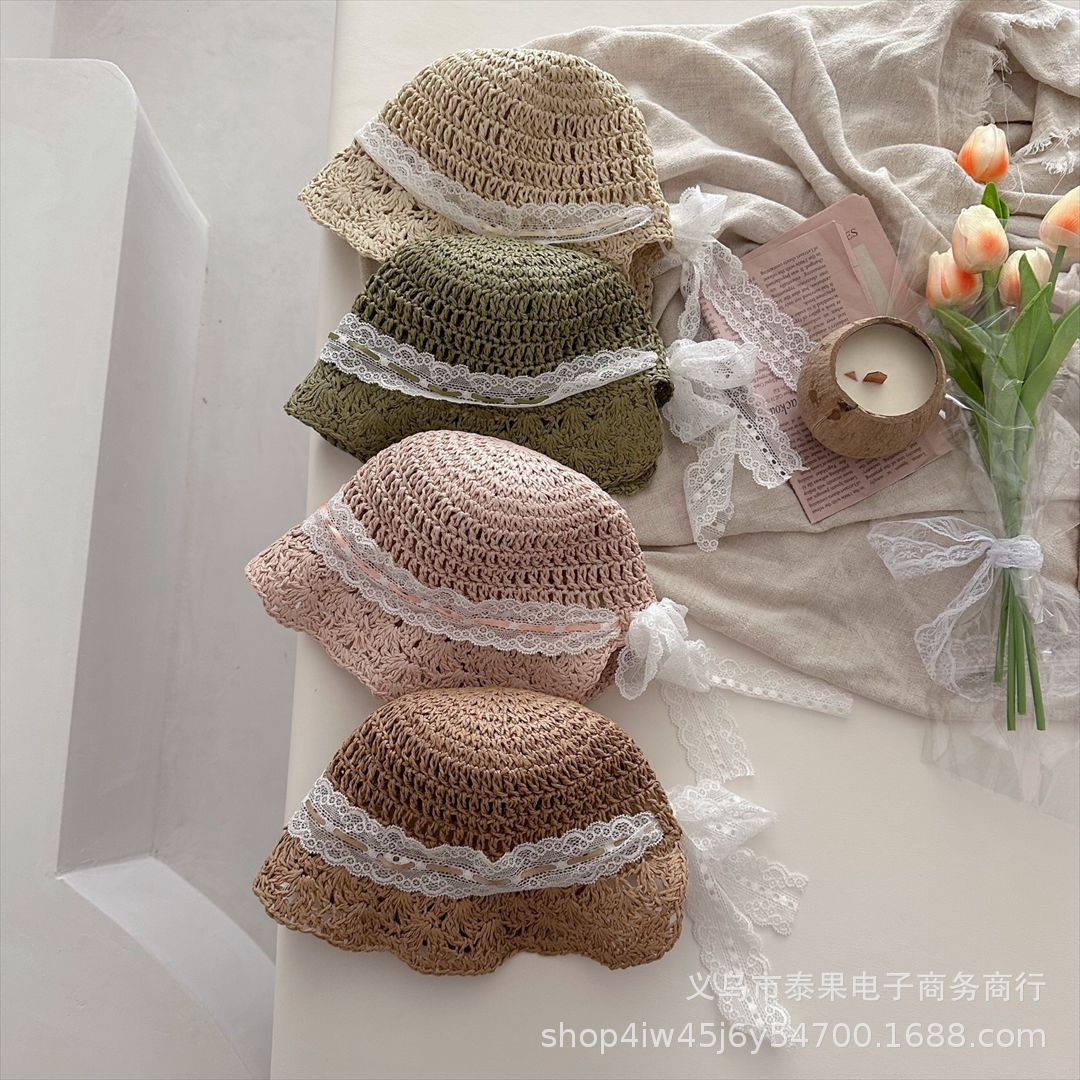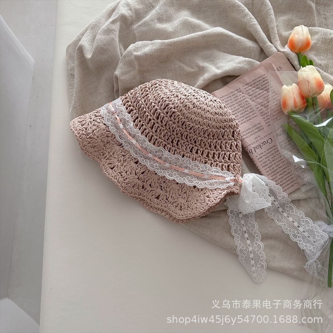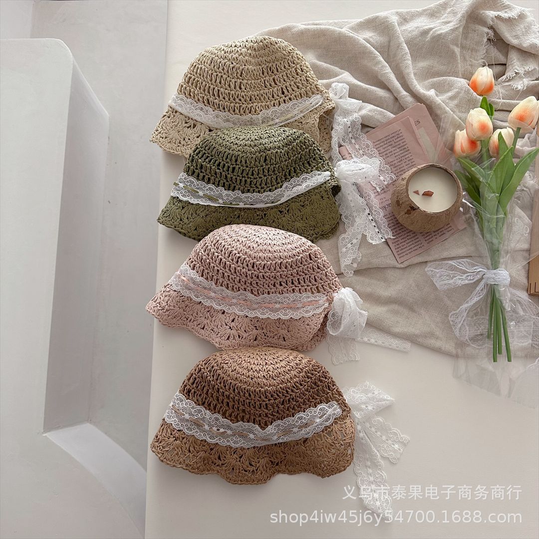 어린이 밀짚 모자 여름 통기성 레이스 보우 웨스턴 스타일 자외선 차단제 해변 차양 여아 아기 여아 큰 모자스토어 가기