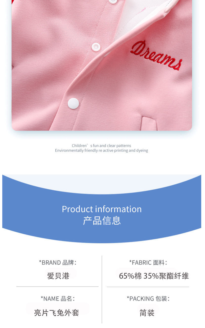 4838 소녀 야구 세트 코트 봄 신상품 스팽글 플라잉 래빗 한국 어린이 아기 자켓 코트