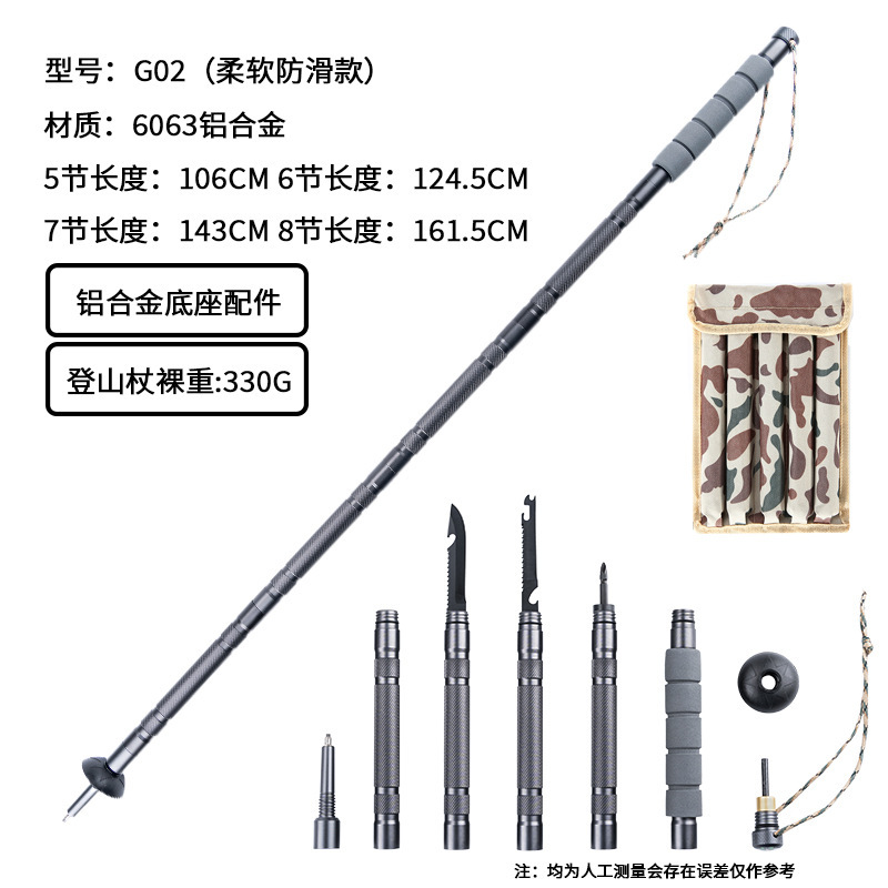 2. 妥善存放:收纳时确保刀具完全收回并锁定,登山杖折叠后放在干燥通风处,避免阳光暴晒或接触腐蚀性液体(如雨水、油污),防止铝合金杖身氧化。