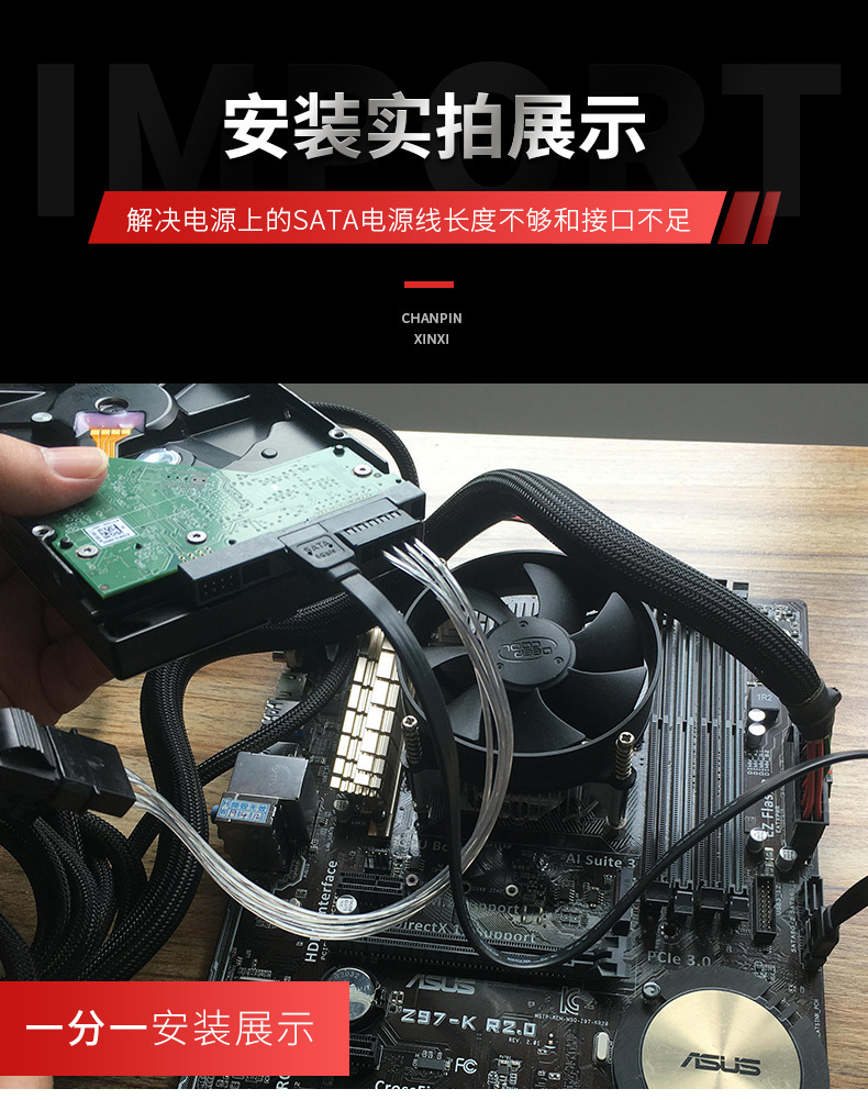 SATA 전원 코드 데스크탑 컴퓨터 하드 디스크 케이블 대형 4p ~ 15pin 1/2 IDE 직렬 포트 어댑터스토어 가기