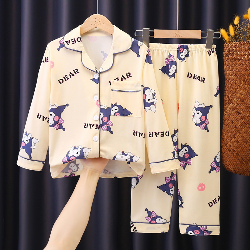 봄과 가을 어린이 잠옷 소년과 소녀 긴 소매 중간과 큰 소년 카디건 옷깃 아기 가정 옷 세트 대외 무역