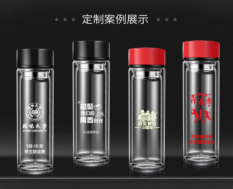 고붕규산 유리 도매, 고온 방지 물컵, 이중층 단열 유리 찻잔, 사무용 두꺼운 인쇄 로고