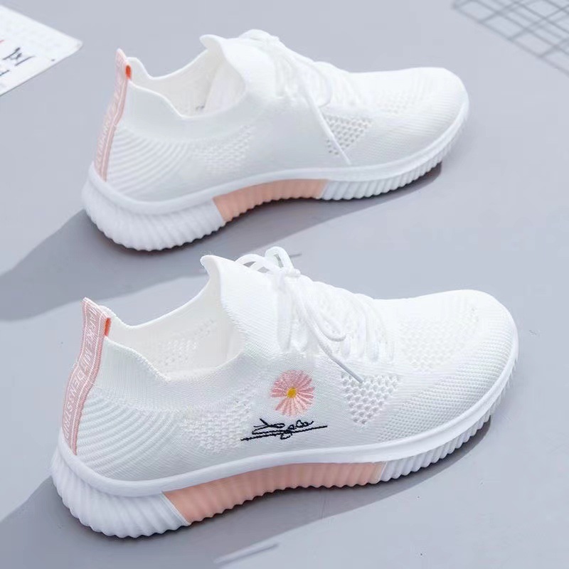 운동화 여성의 통기성 해외 무역 로우 탑 화이트 신발 여성의 매일 부드러운 밑창 어머니 신발 봄과 가을 비행 짠 캐주얼 신발 여성용