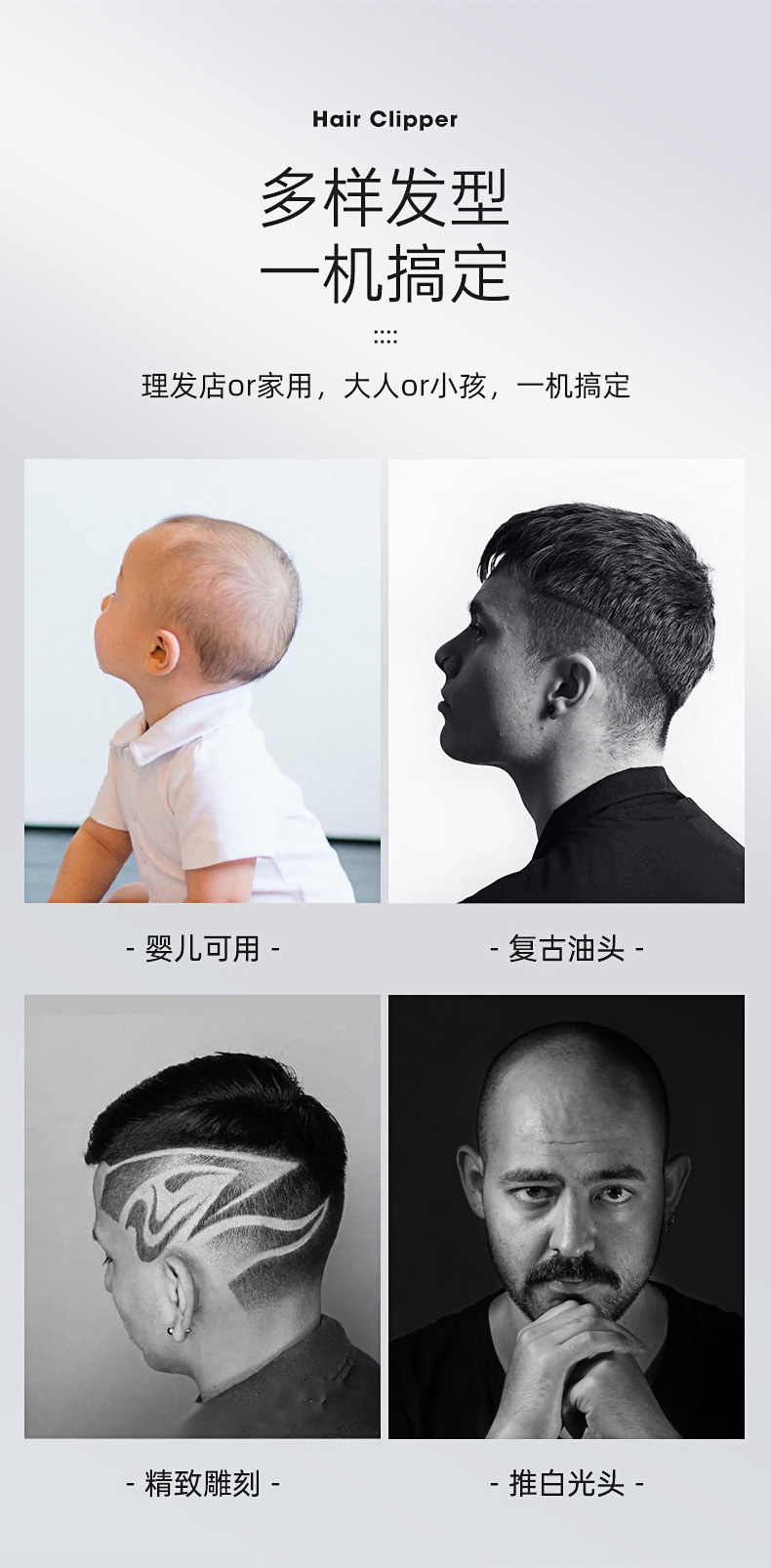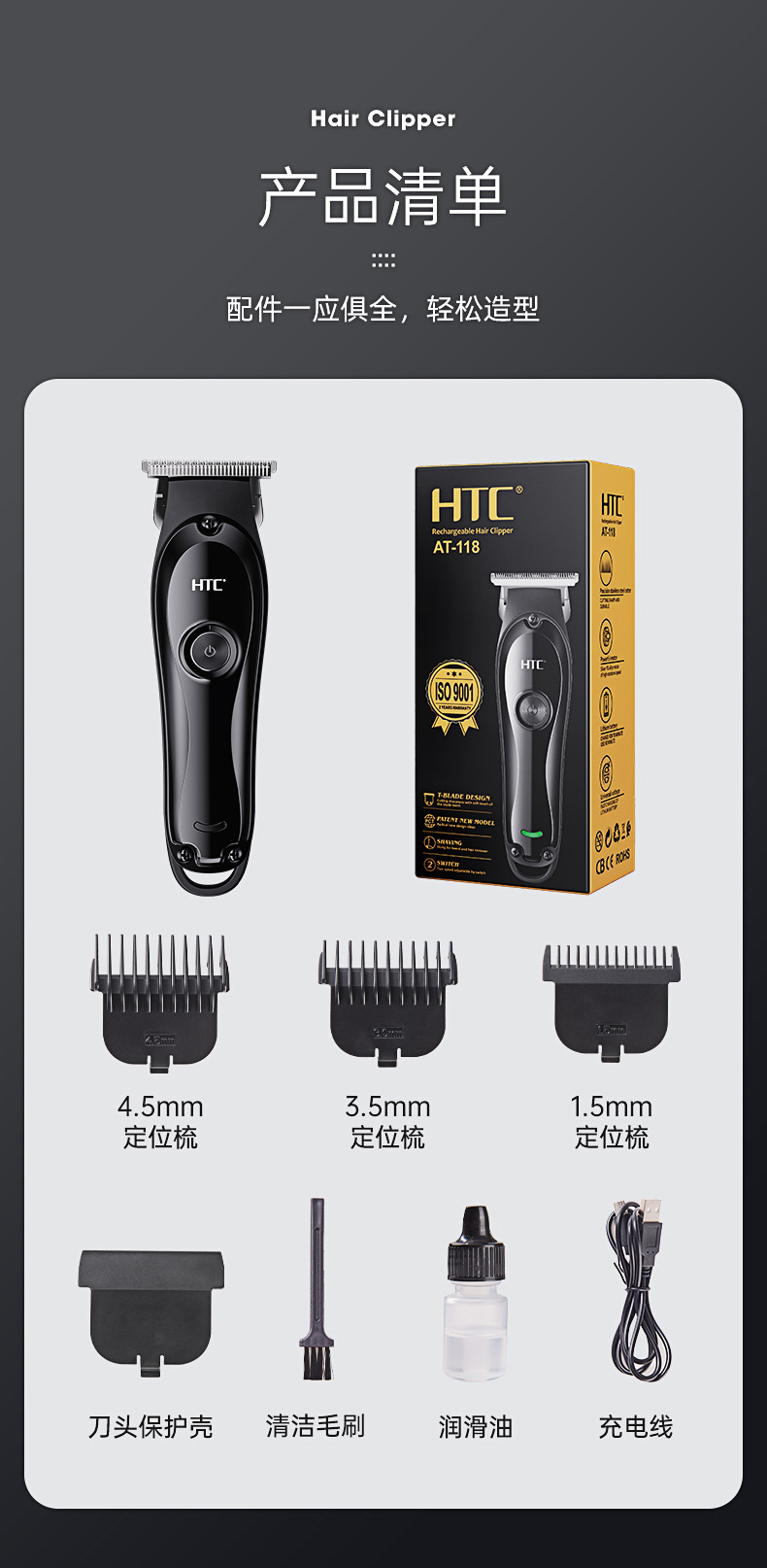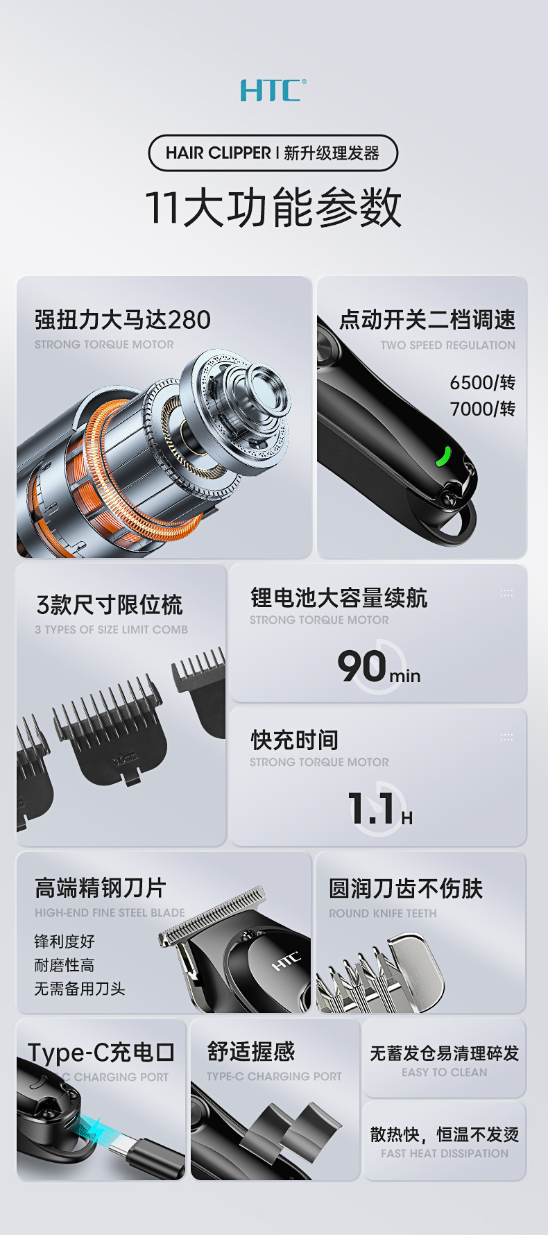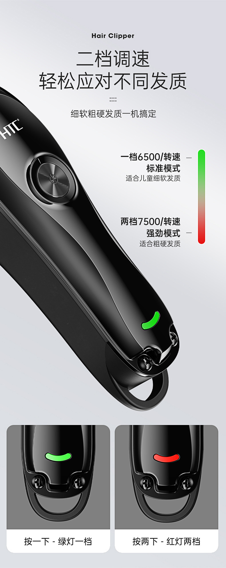 HTC 이발기 가정용 머리깎기 콧수염 정리 전기 이발기 충전식 내수용 전기 이발기 저소음 업그레이드