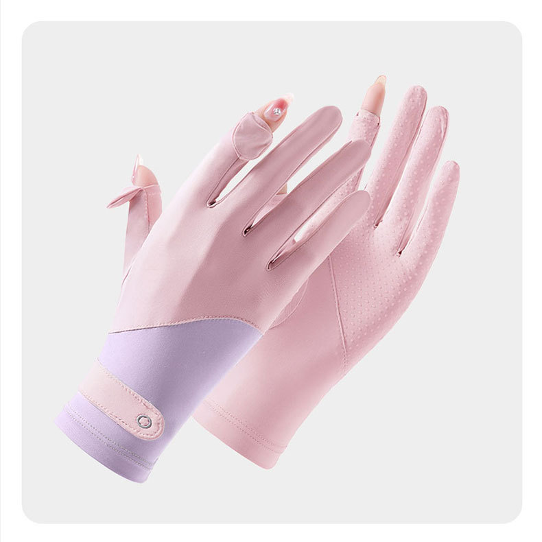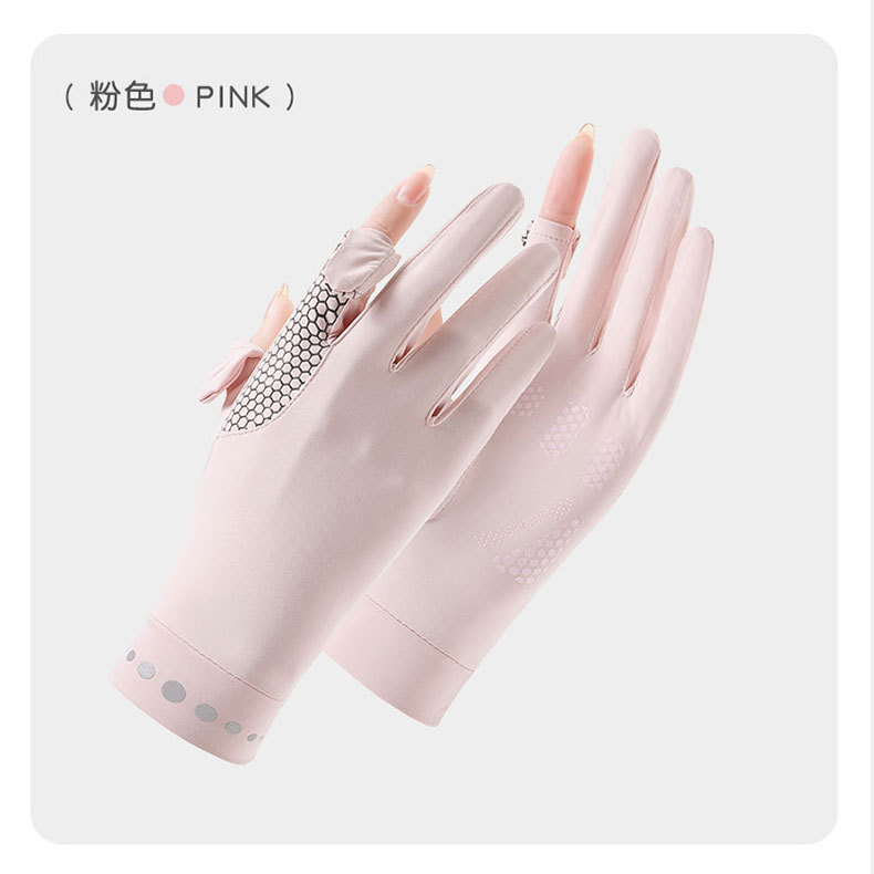 여성용 자외선 차단 장갑, 자외선 차단, 라이딩 및 운전용, 봄 여름용 얇은 차양, 통기성, 오픈 핑거 아이스 실크 장갑, Xinji