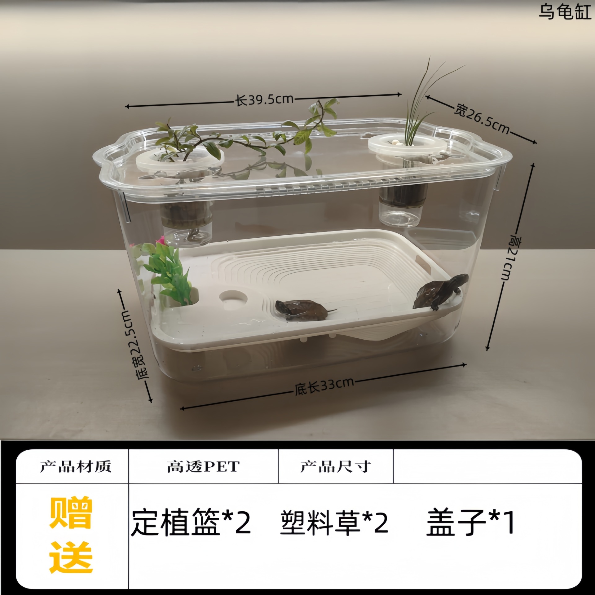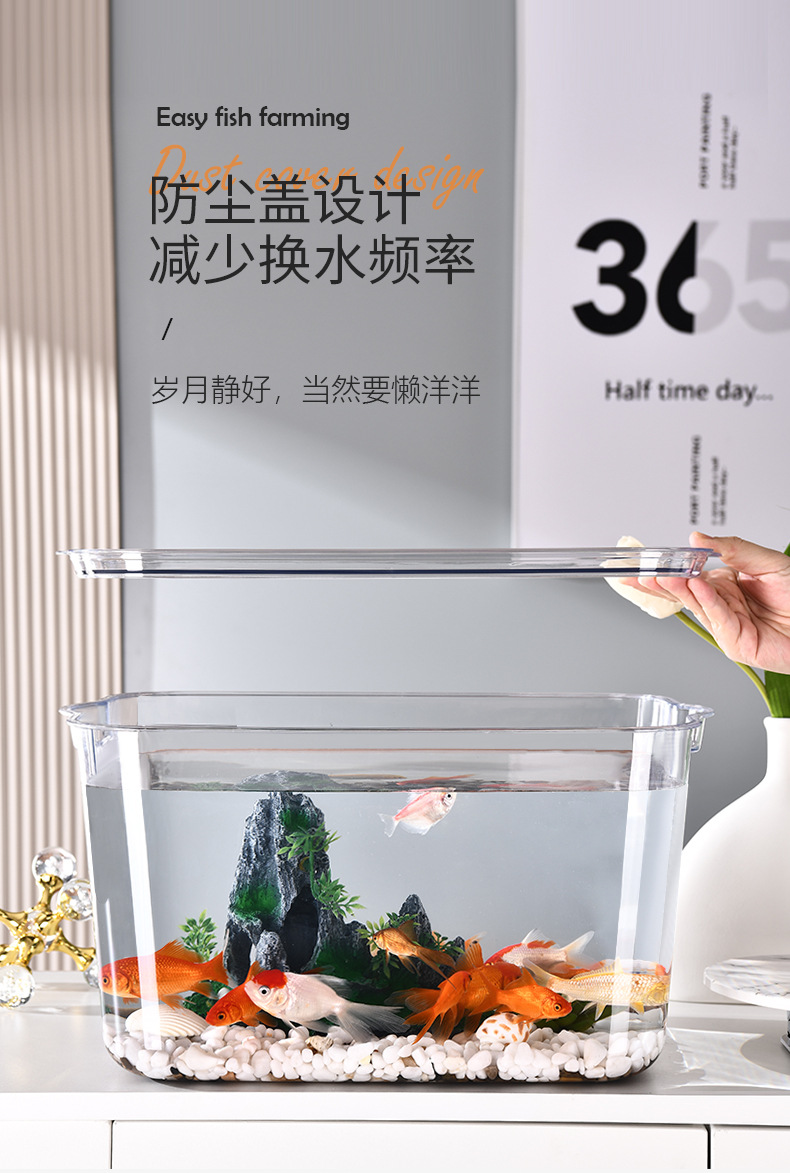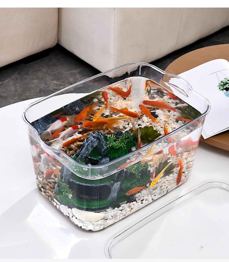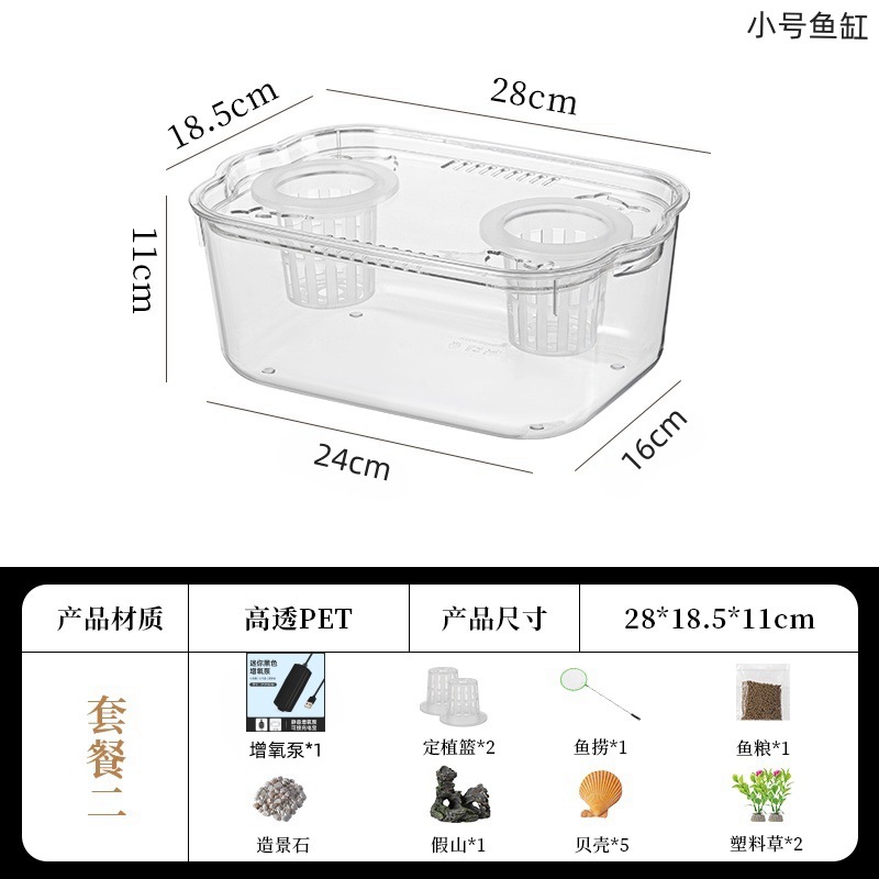 가정용 플라스틱 데스크탑 작은 물고기 탱크 이중 녹색 식물 뚜껑 고화질 투명 수족관 탱크 금붕어 탱크 거북이 번식 상자스토어 가기