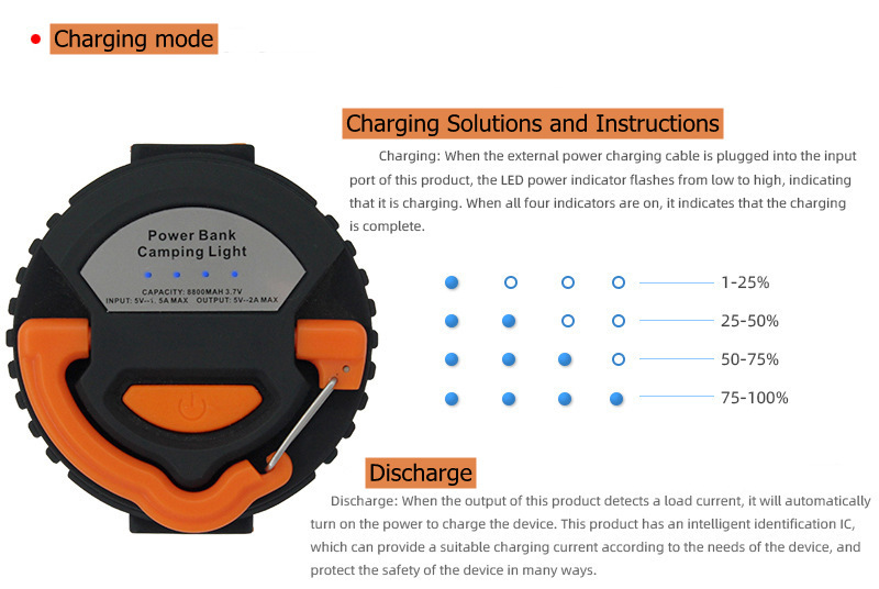 야외 LED 캠핑 텐트 라이트 USB 충전식 비상 조명 자석 흡착 교수형 조명 방수 캠핑 조명