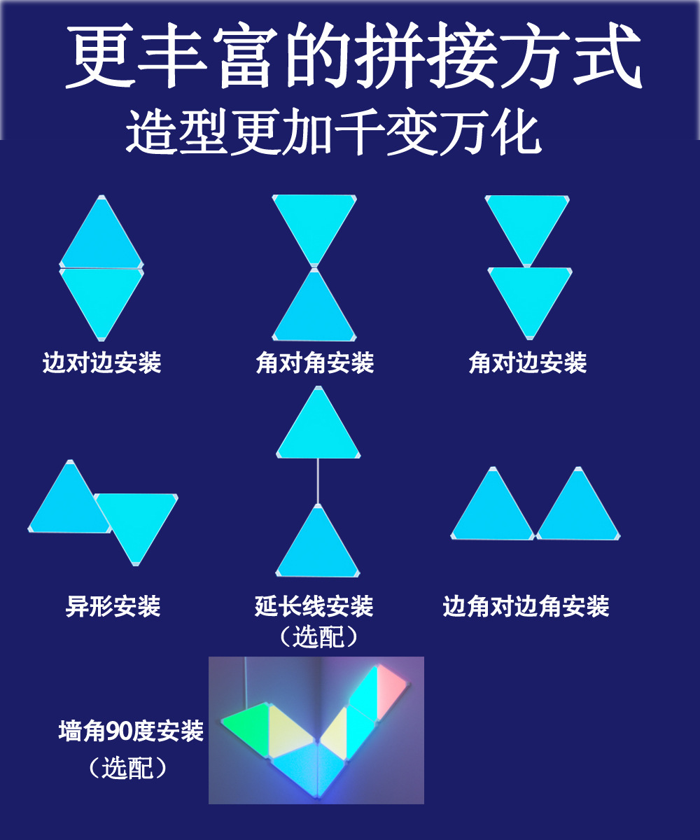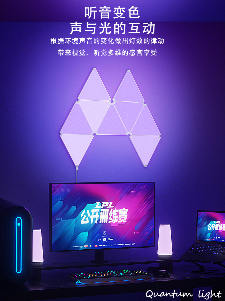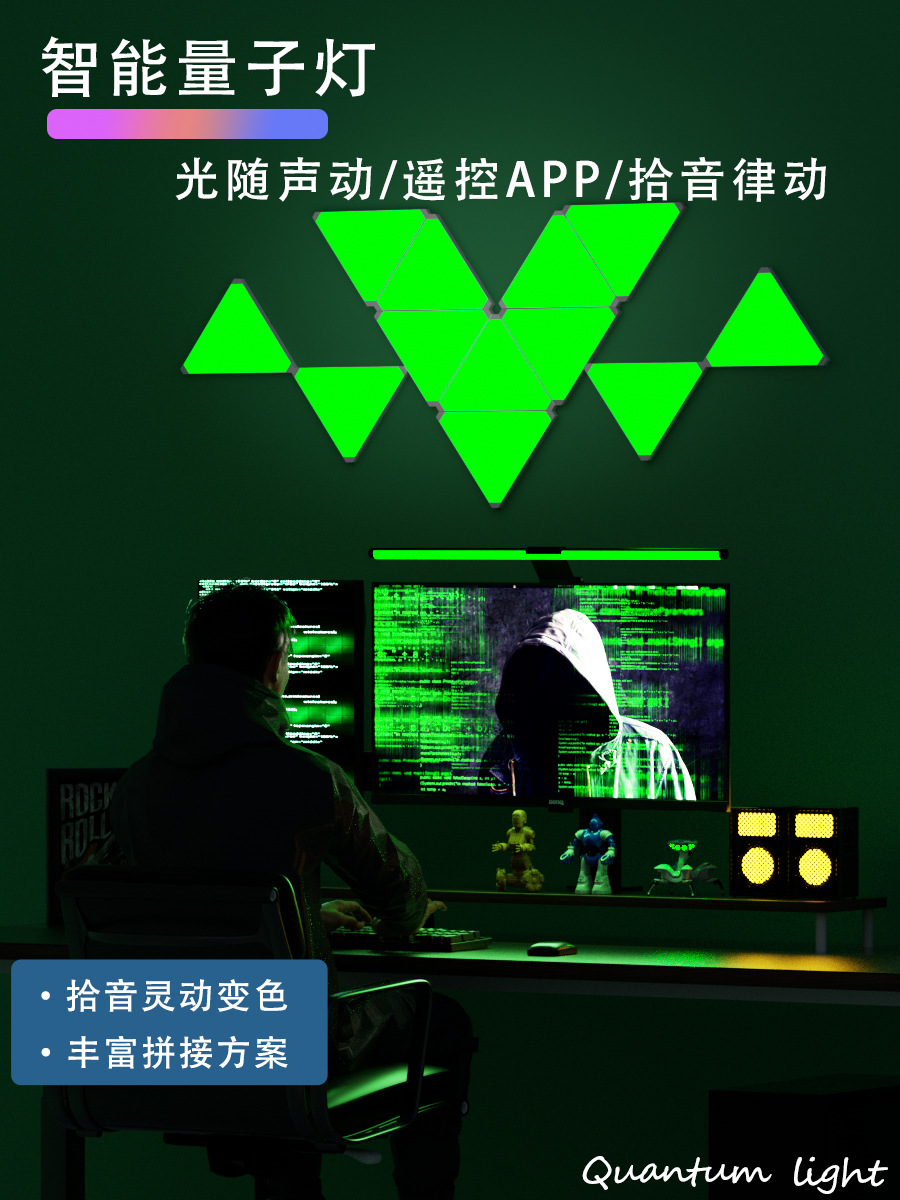지능형 홀수 라이트 보드 픽업 리듬 음악 양자 램프 삼각형 접합 벽 램프 전기 경쟁 분위기 램프 벽 램프 야간 조명