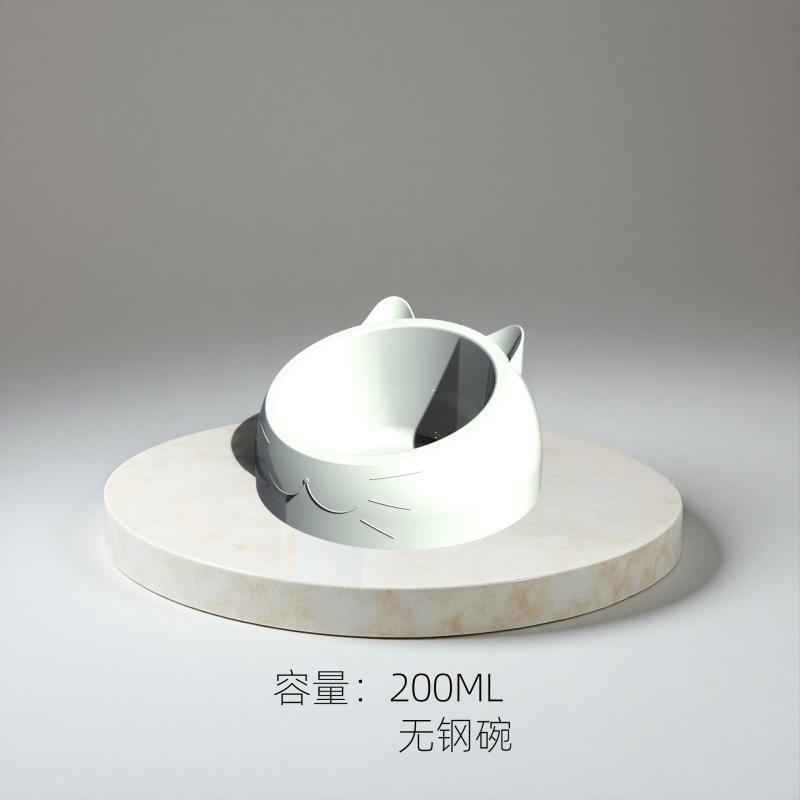 • 말차 녹색 고양이 그릇 200ml 강철 그릇, 흰색 천천히 먹이는 바닥 대야 포함