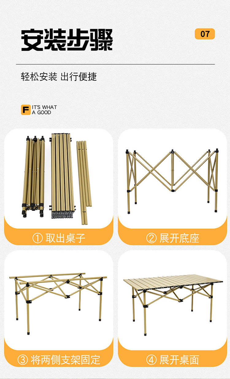 야외 접이식 테이블과 의자 두꺼운 탄소 강철 계란 롤 테이블 자동차 여행 휴대용 접이식 테이블 캠핑 식탁