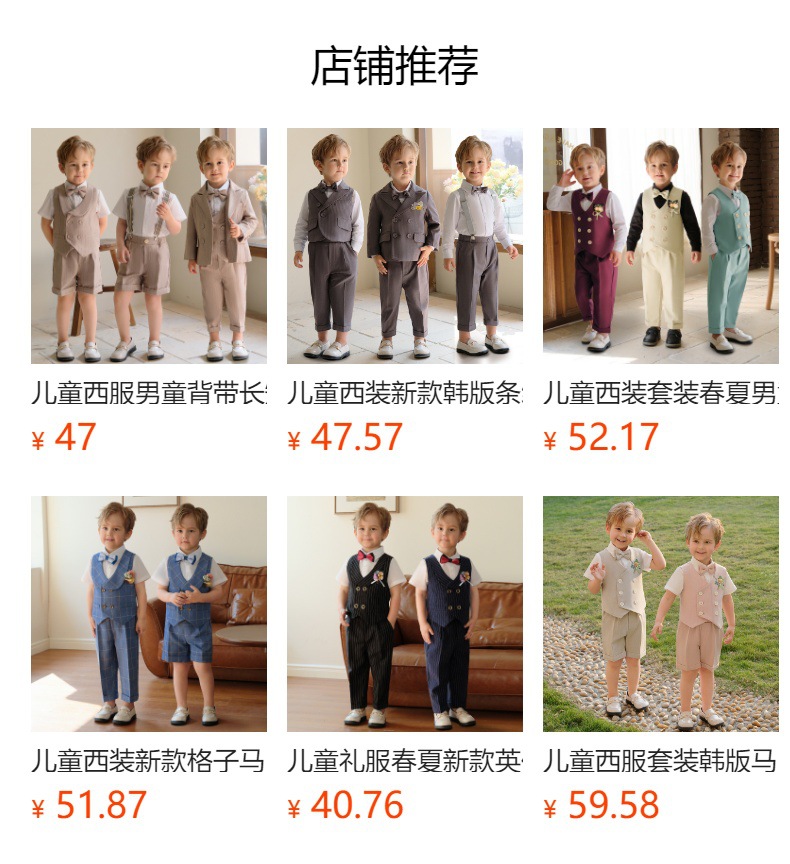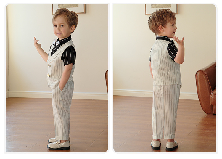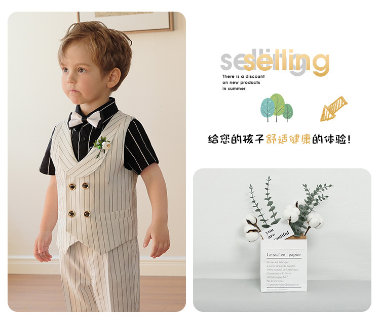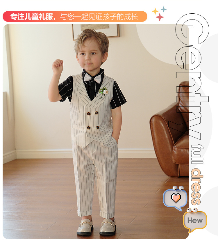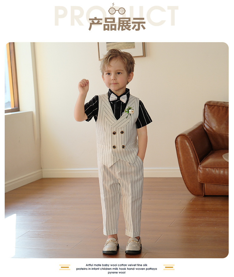 어린이 세트 소년의 새로운 반팔 조끼 세트 아기 꽃 소년의 결혼식 원피스 어린이 호스트 성능 사진 원피스스토어 가기