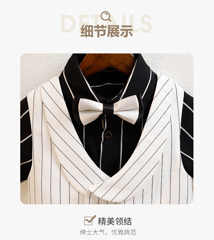 • 5 피스 양복 조끼 (반팔 셔츠 + 양복 조끼 + 바지 + 나비 넥타이 + 코사지)
